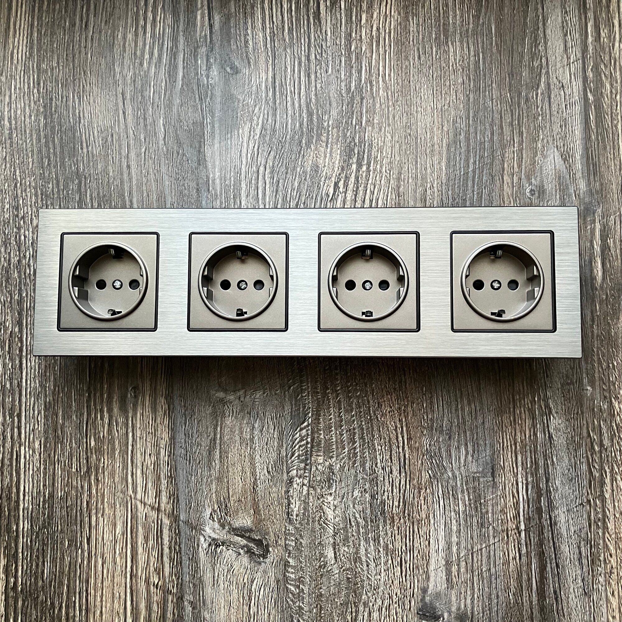 Купить Розетка четверная 16А 250В, рамка из металла на 4 поста алюминий, Светло-серый