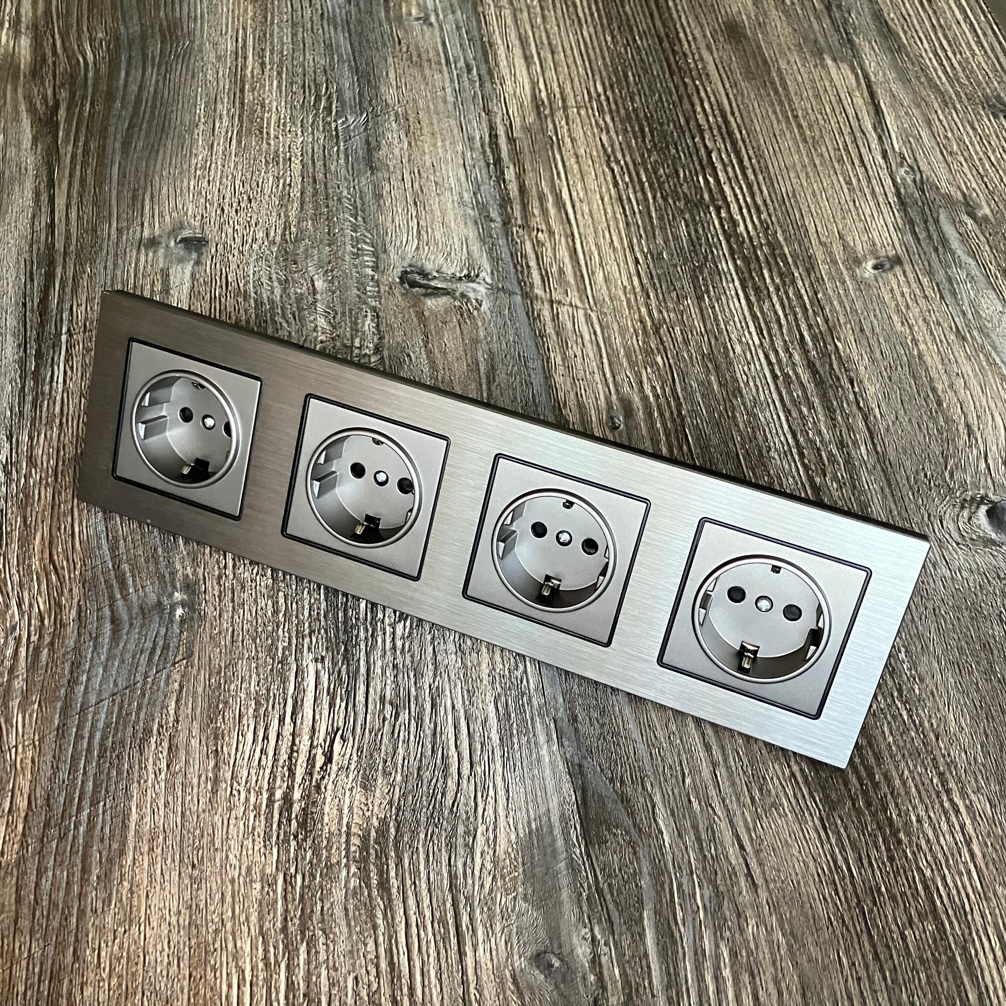 СохранитьРозетка четверная 16А 250В, рамка из металла на 4 поста алюминий, Светло-серый интересное: