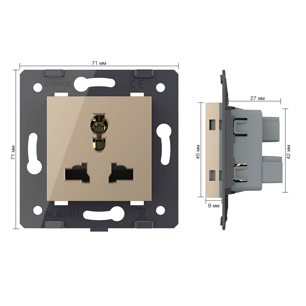 СохранитьМеханизм розетки электрической с заземлением защитными шторками универсальная 16A, цвет золотой LIVOLO ORIGINAL интересное:
