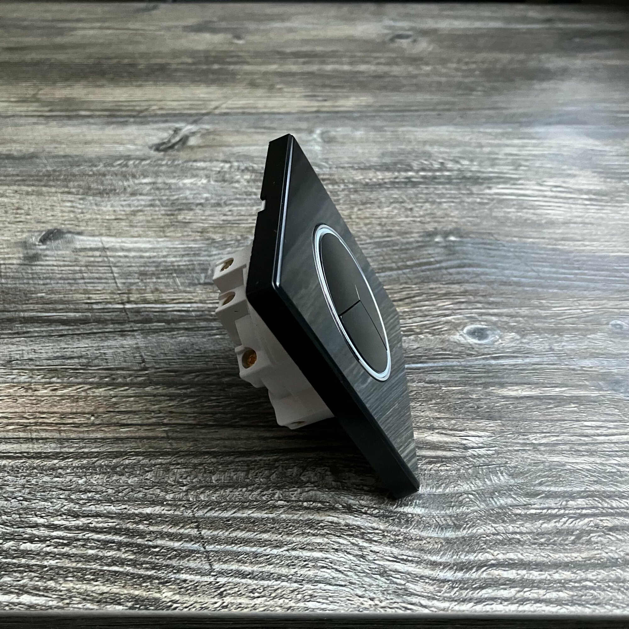 Выключатель двухклавишный с подсветкой, кнопочный, рамка стекло Серый