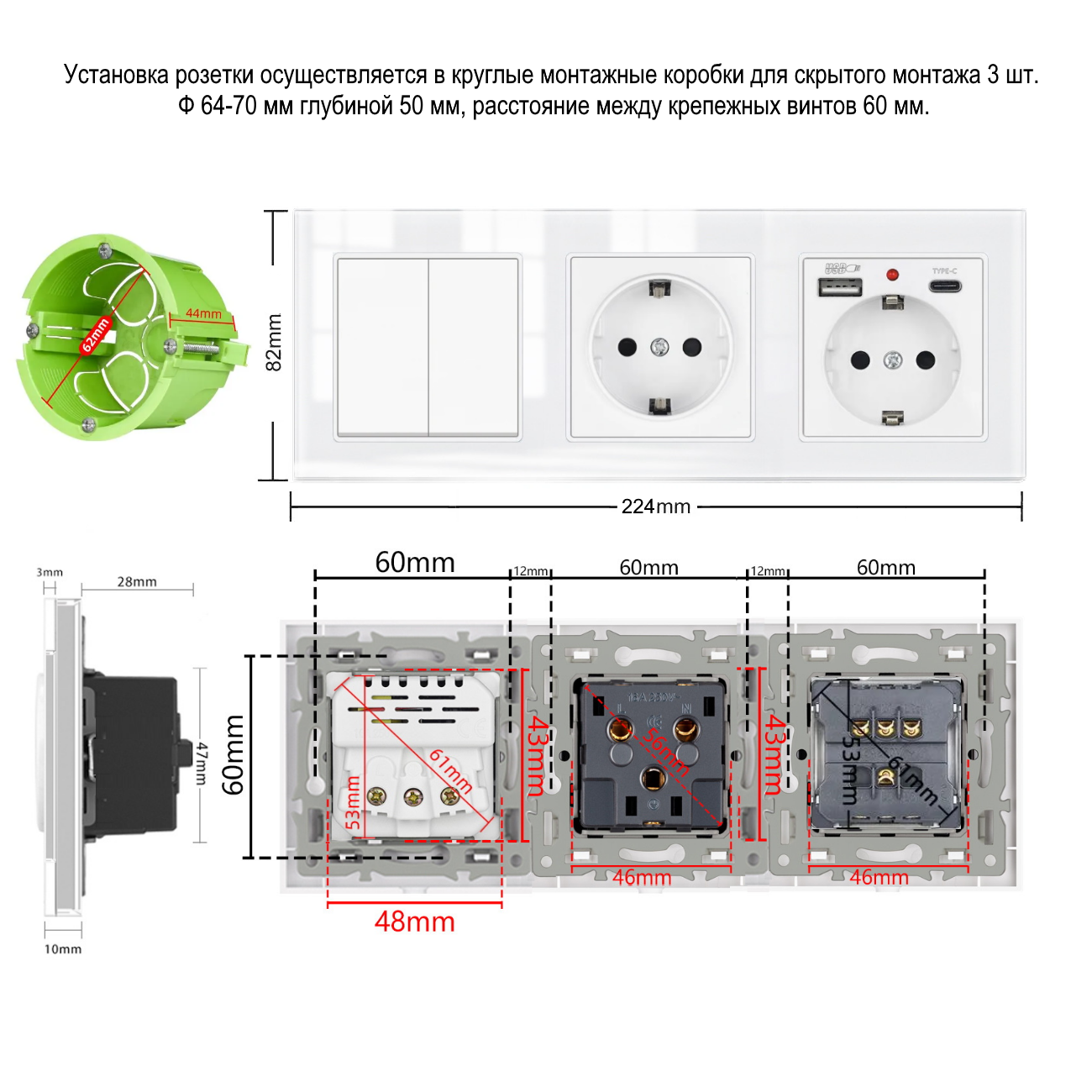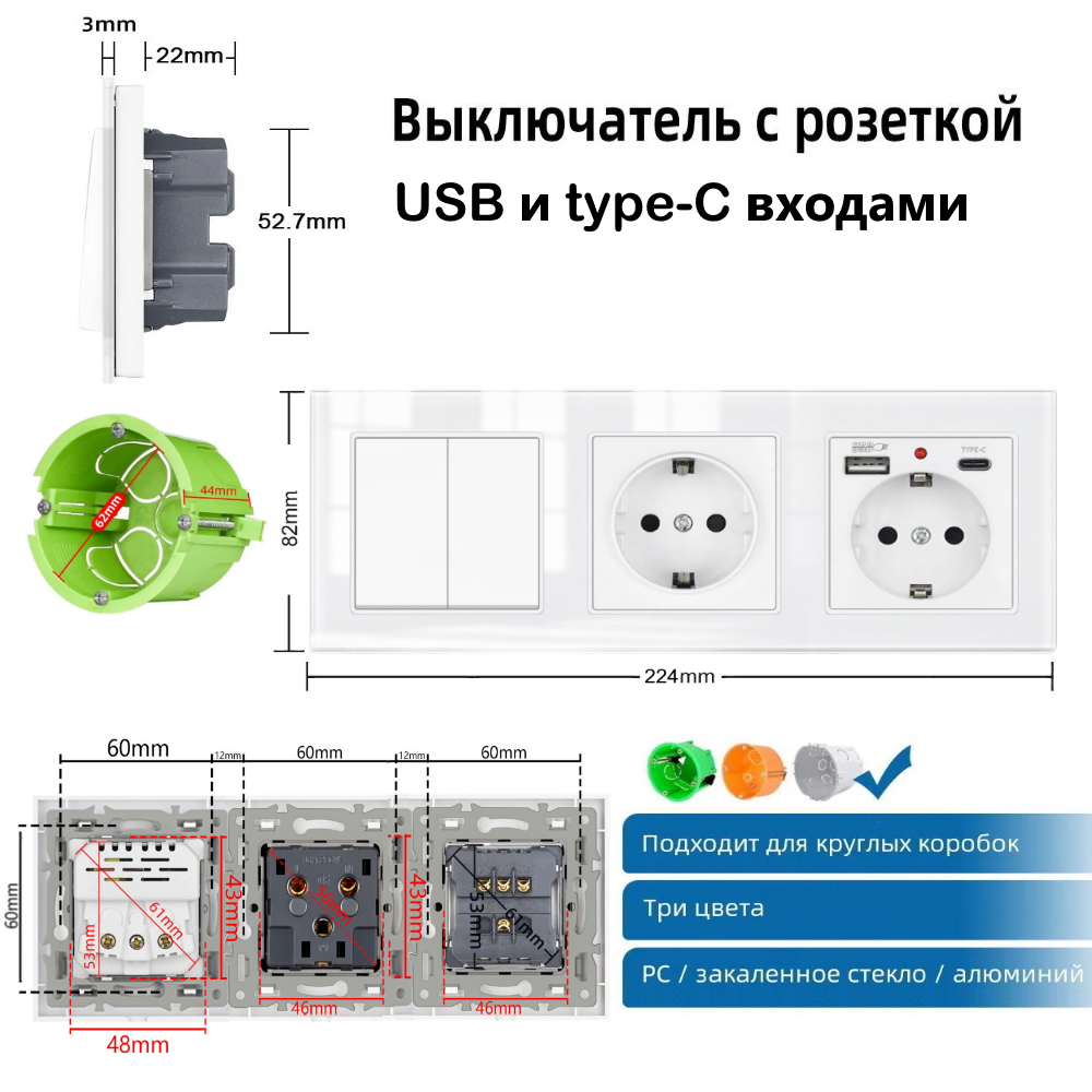 Ниже Вы можете прочитать отзывы на Двухклавишный выключатель с двойной розеткой и 2-мя USB и Type-C, рамка стекло, цвет белый., ознакомится с подробными характеристиками, посмотреть интересные обзоры и фотографии на Двухклавишный выключатель с двойной розеткой и 2-мя USB и Type-C, рамка стекло, цвет белый..