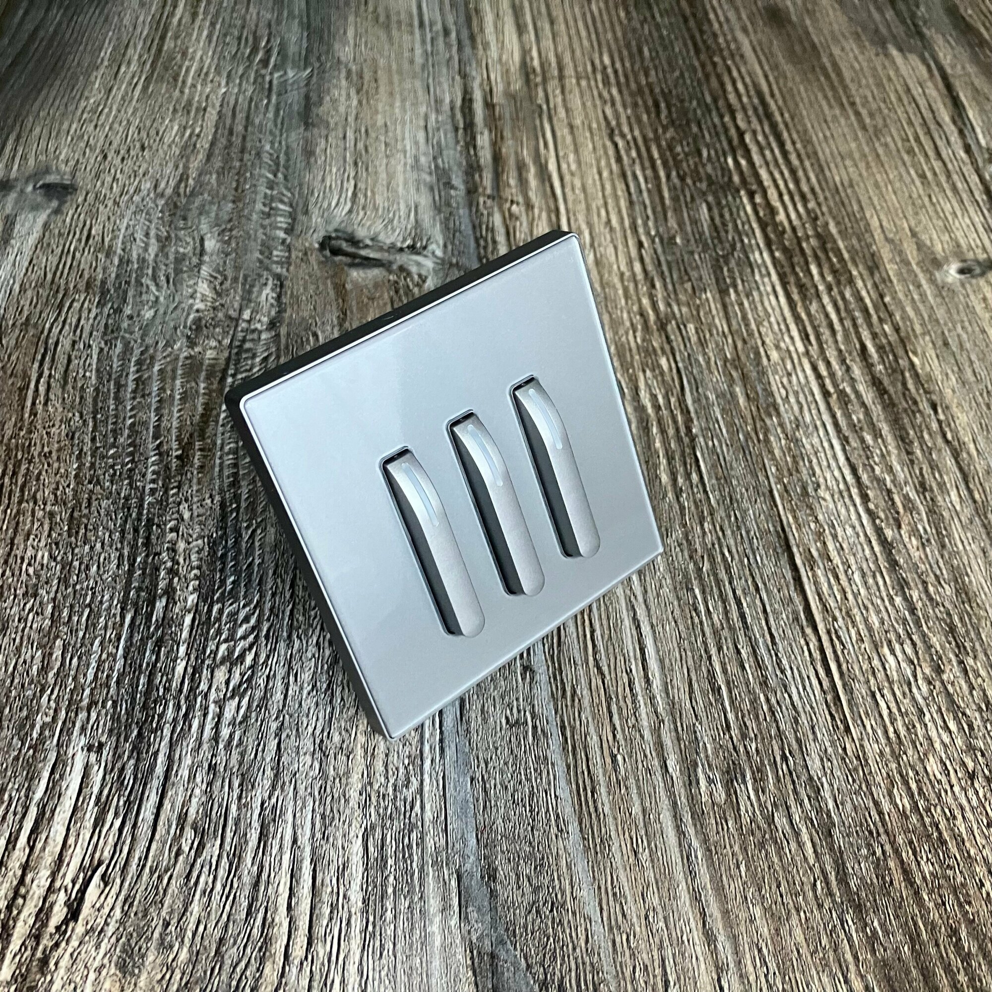Купить Выключатель трехклавишный с подсветкой, дизайн клавиш пианино, рамка стекло Серый