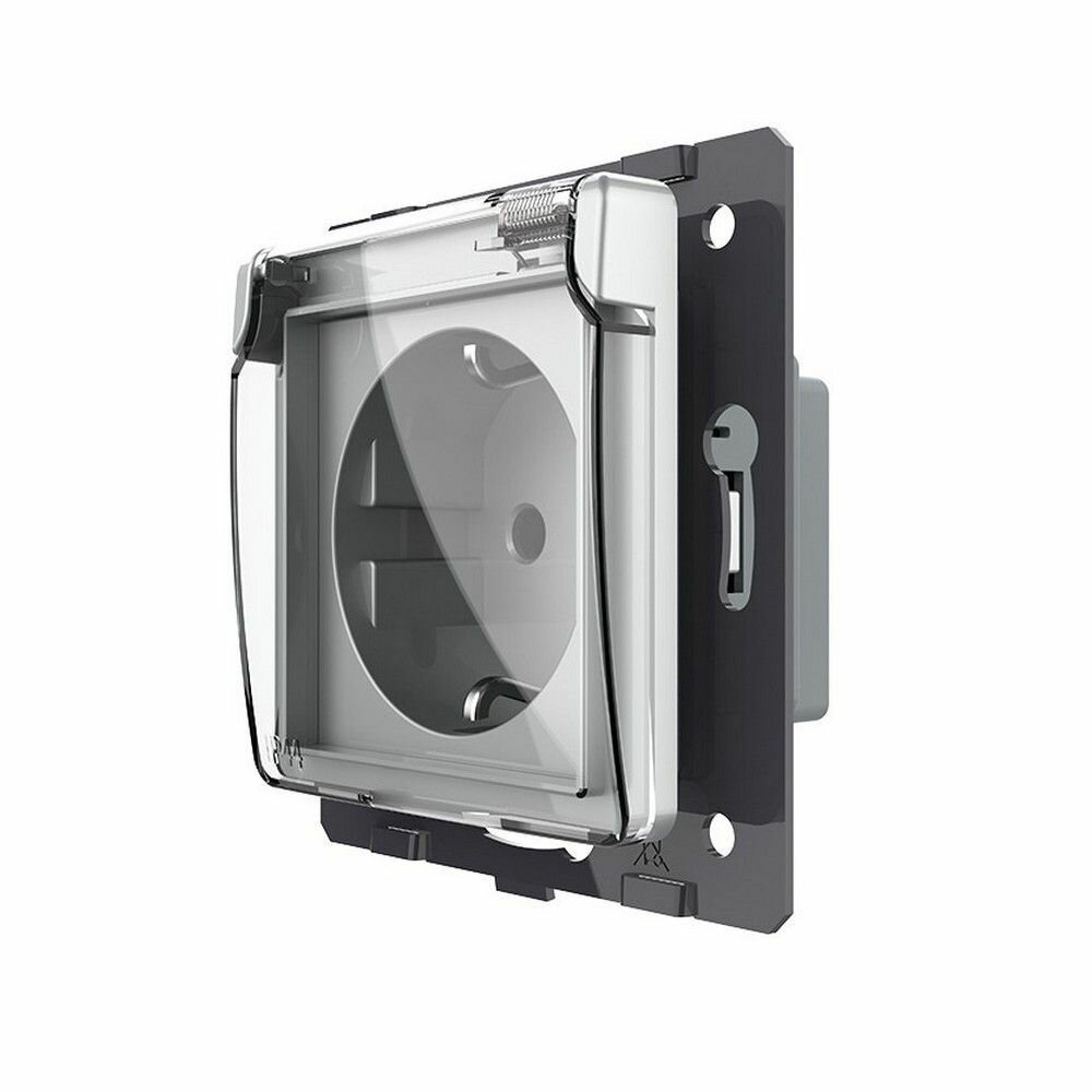 Купить Механизм розетки электрической с заземлением защитными шторками с крышкой IP44 16A, цвет серый LIVOLO ORIGINAL