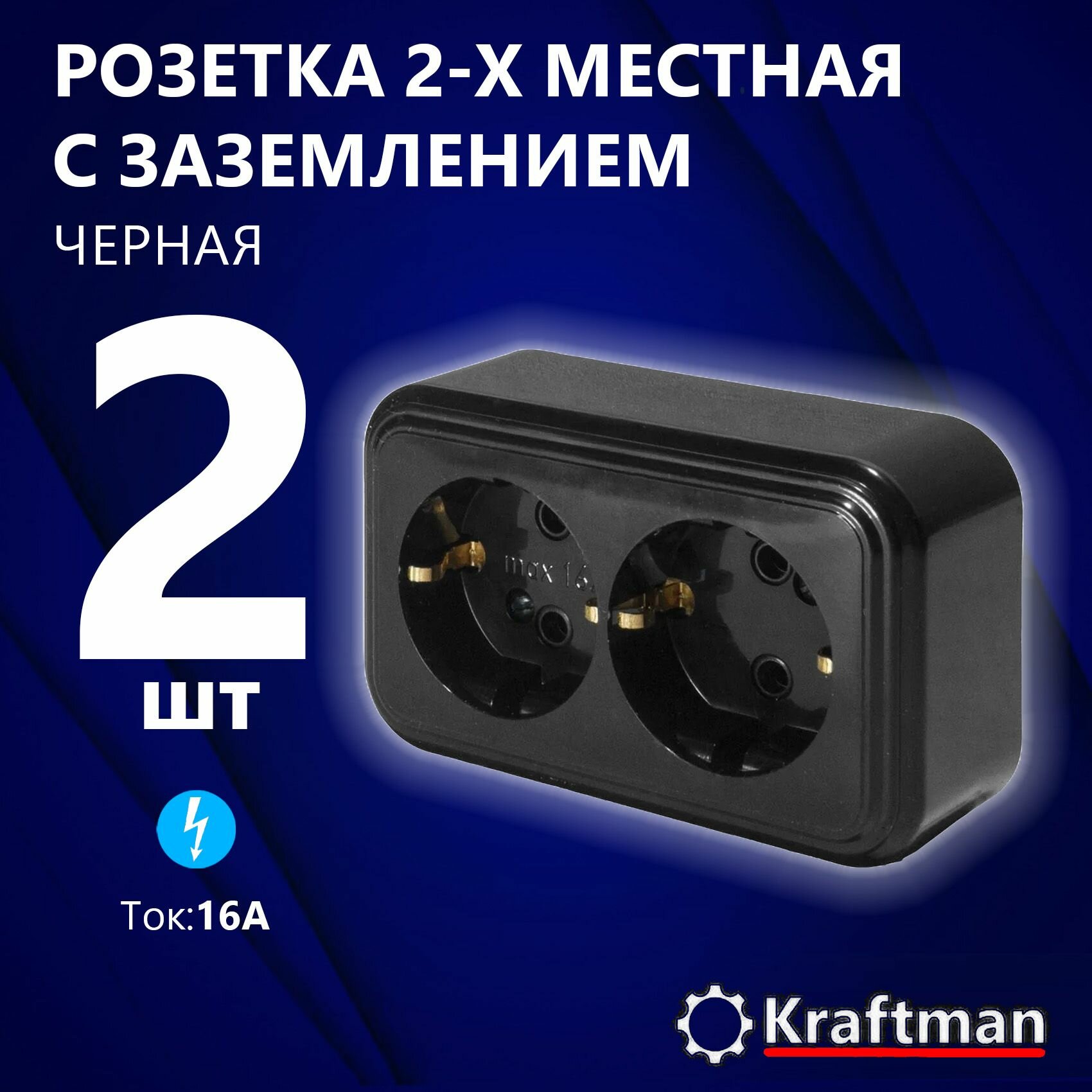 Купить Розетка накладная наружней открытой установки двухместная RA 16-238-Ч, с заземлением, черная, 2 шт
