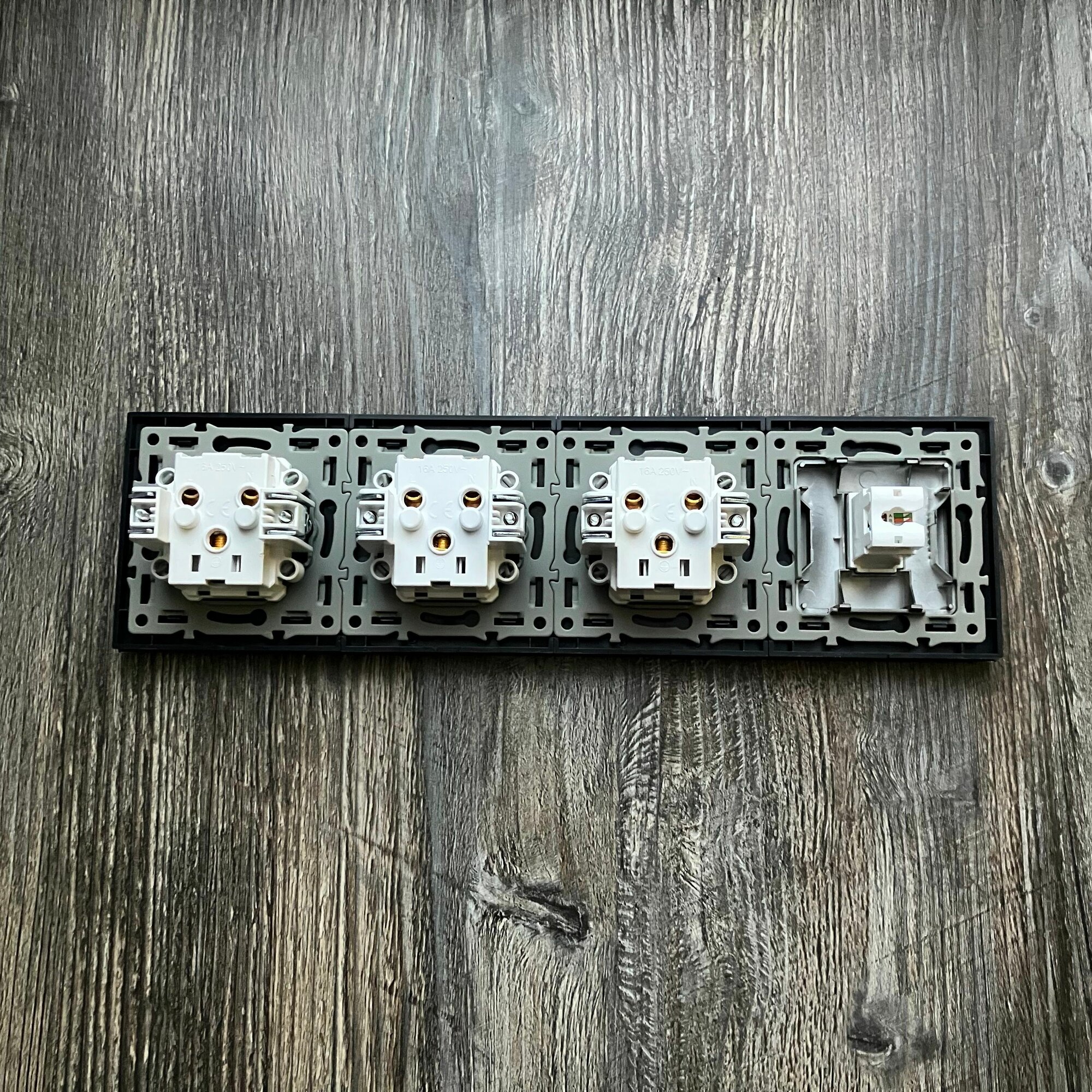Розетка четырехпостовая с интернетом RJ-45 CAT6, 4 поста, рамка стекло, 295х82х8 мм, цвет серый