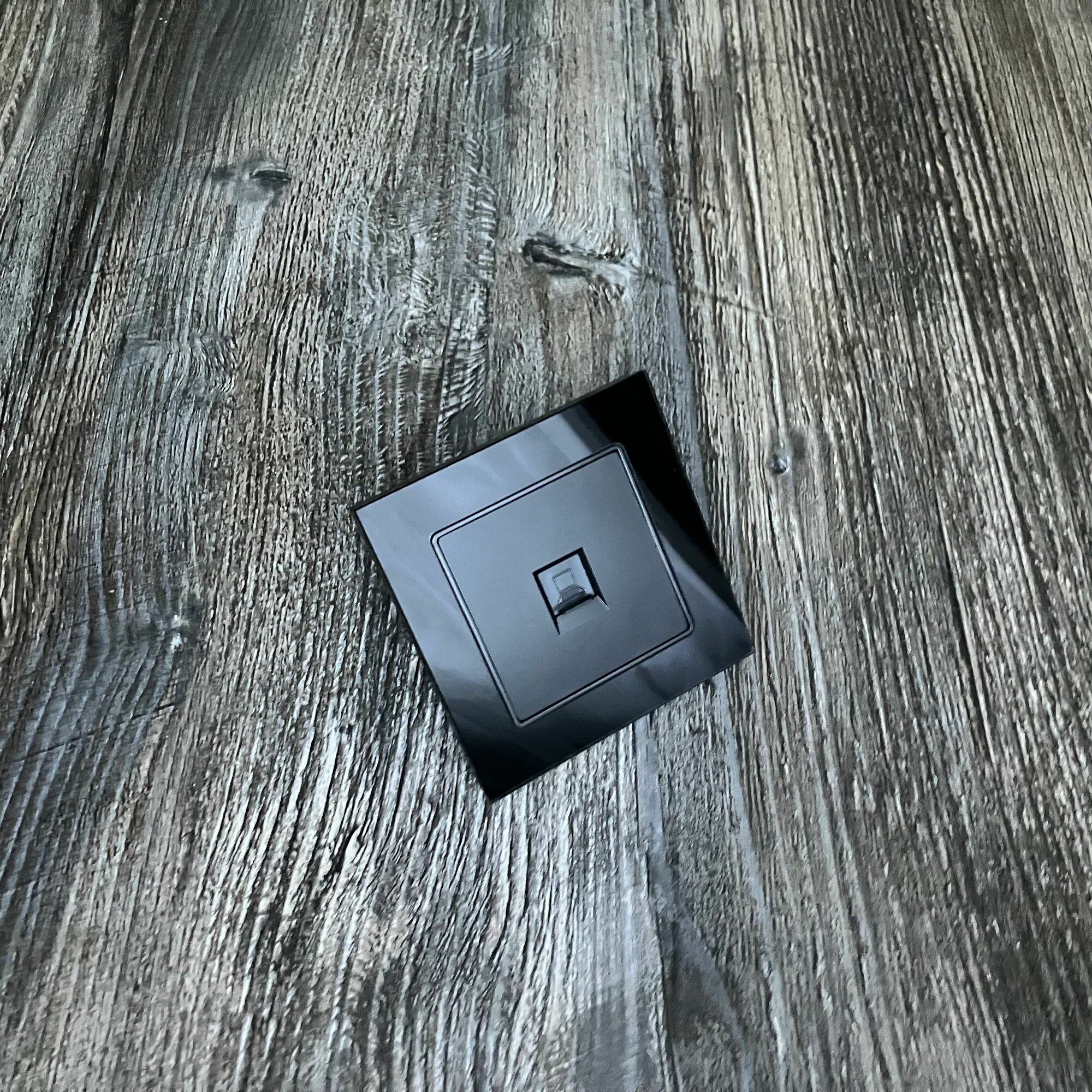 Купить Розетка компьютерная одинарная RJ45 6-й кат. рамка стекло, 82*82*8 мм, цвет чёрный