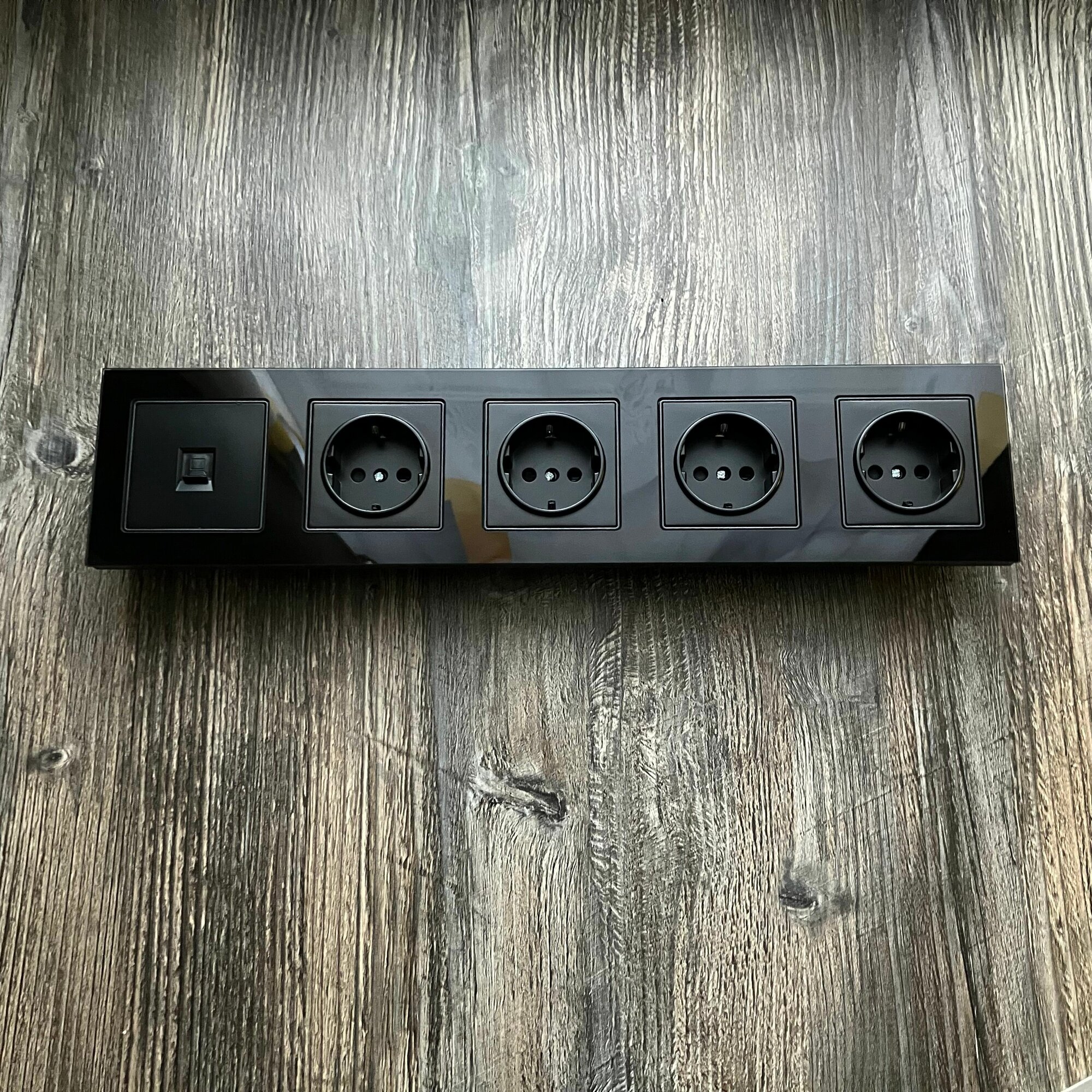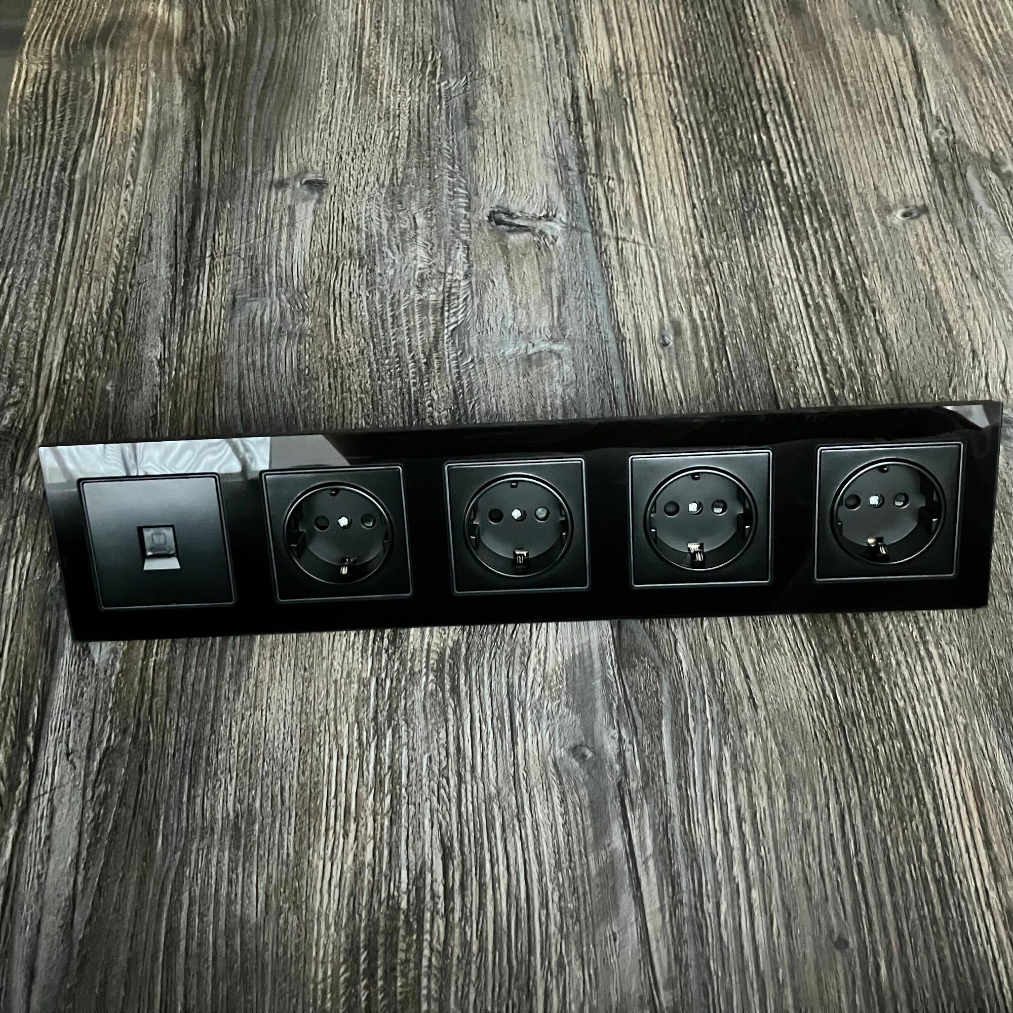 Розетка четырехпостовая с интернетом RJ-45 CAT6, 4 поста, рамка стекло, 295х82х8 мм, цвет чёрный