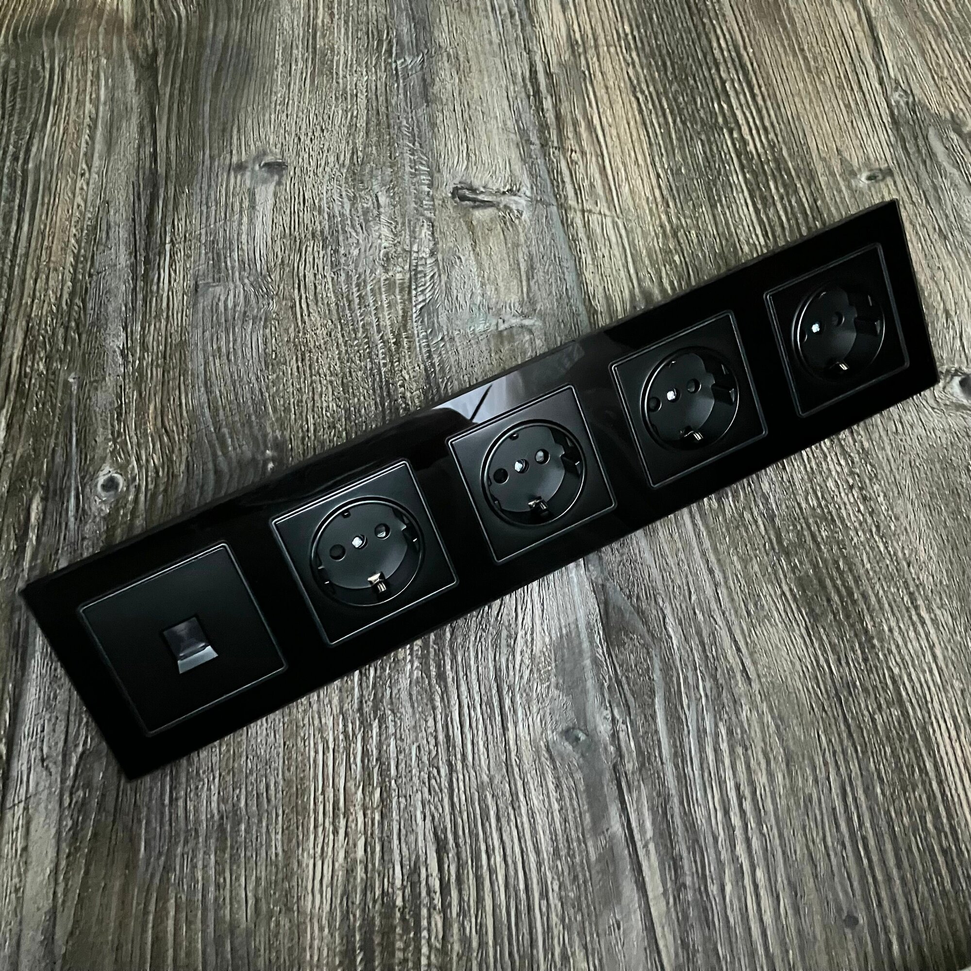 Купить Розетка пятипостовая с интернетом RJ-45 CAT6, 5 постов, рамка стекло, 366х82х8 мм, цвет чёрный