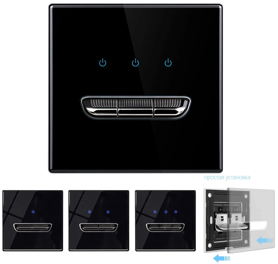 СохранитьВыключатель трехклавишный с подсветкой, рамка стекло Чёрный интересное:
