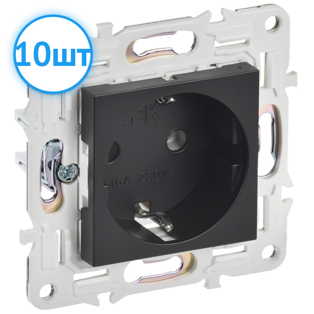 Купить Механизм розетки IEK SKANDY с заземлением 16А черный SK-R05Bl SK-R11-16-K02 (комплект из 10 шт.)