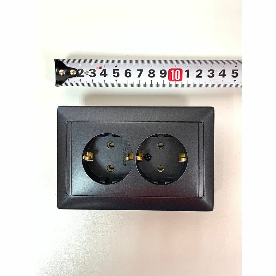 Купить Розетка двухместная скрытой установки 16А, 250В штепсельная с заземляющим контактом, серия СТ, графит, (РС16-313), 2 шт
