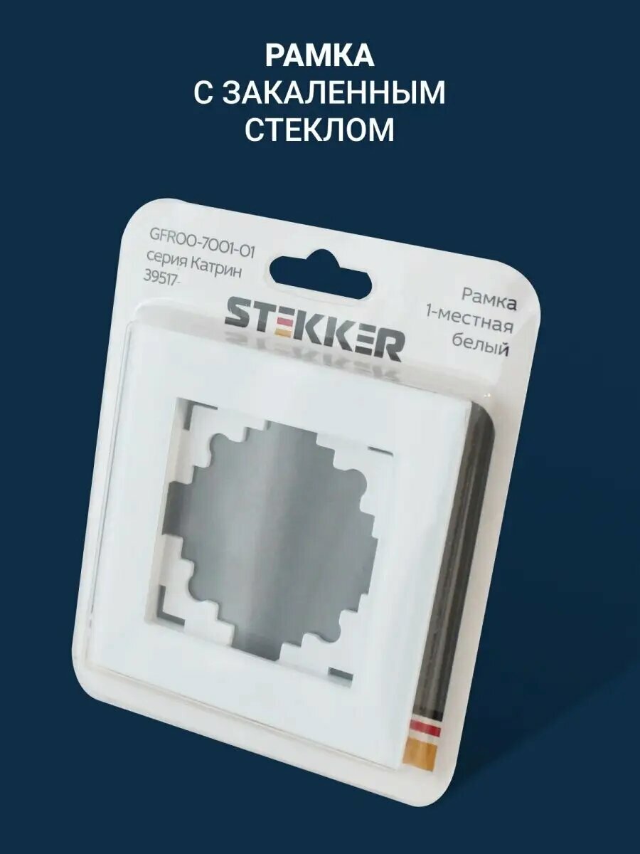 Розетка Stekker "Катрин", трехместная, белая, с заземлением и шторками, стекло