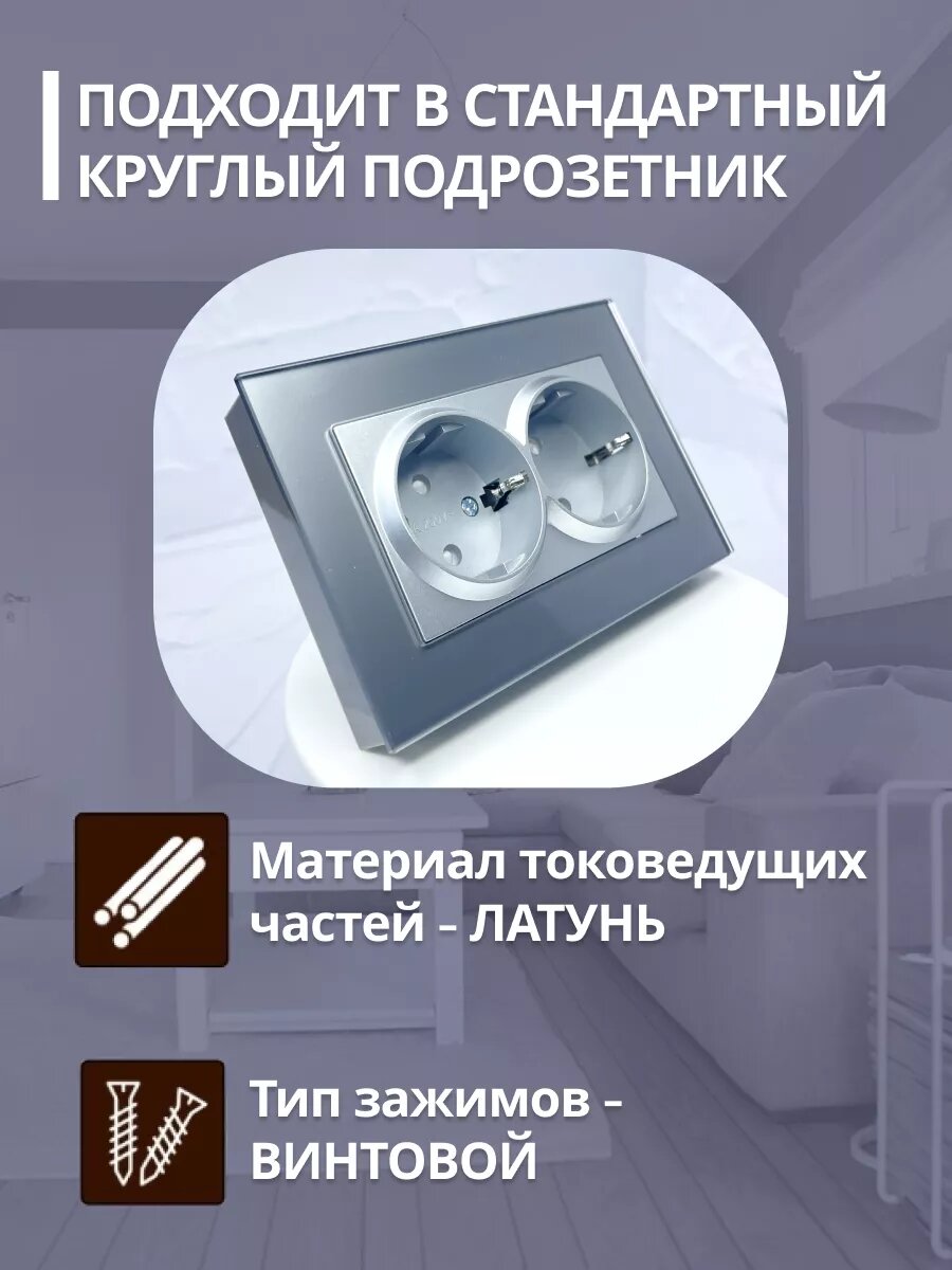 СохранитьРозетка Stekker "Катрин", двойная, серая, с заземлением и шторками, стекло интересное: