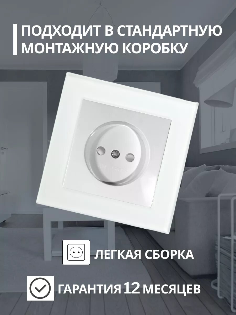 Купить Розетка Stekker "Катрин", одинарная, белая, без заземления, со шторками, стекло