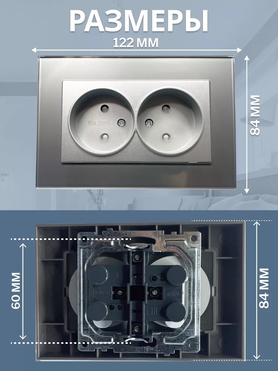 СохранитьРозетка Stekker "Катрин", двойная, серая, без заземления, со шторками, стекло интересное: