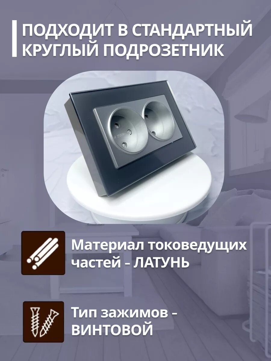 Розетка Stekker "Катрин", двойная, графит, без заземления, со шторками, стекло