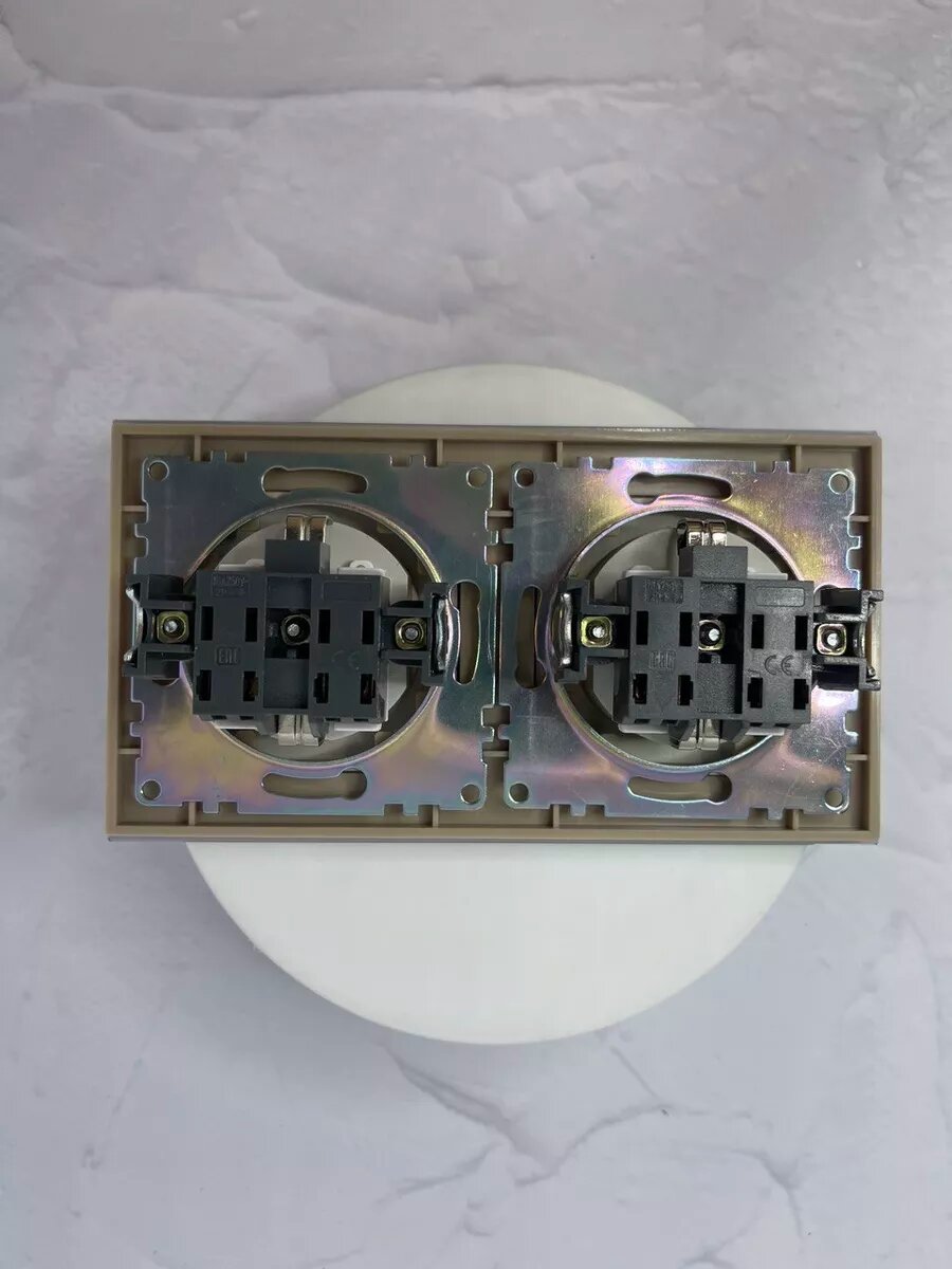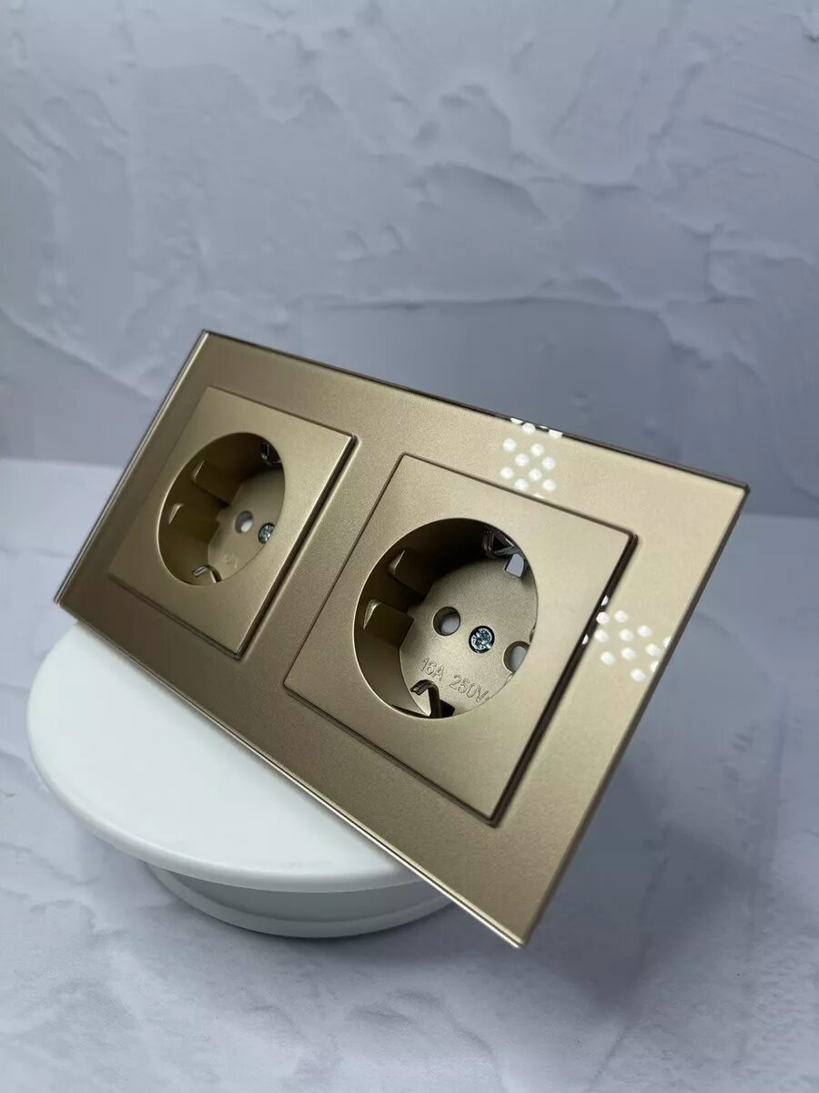СохранитьРозетка Stekker "Катрин", двойная, золотая, с заземлением и шторками, стекло интересное: