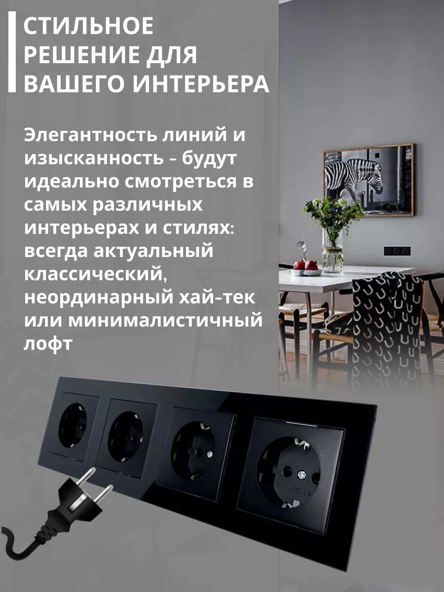 СохранитьРозетка Stekker "Катрин", четырехместная, черная, с заземлением и шторками, стекло интересное:
