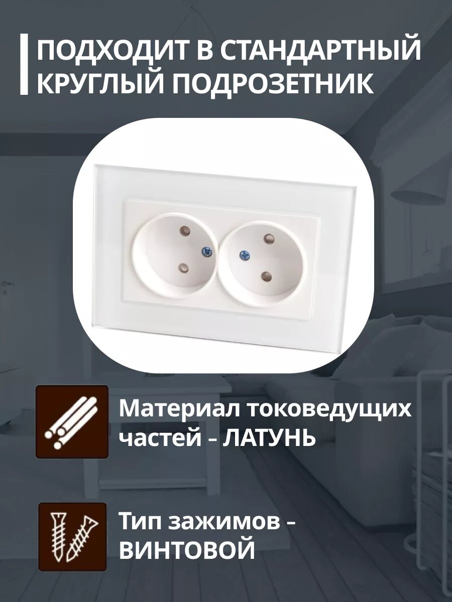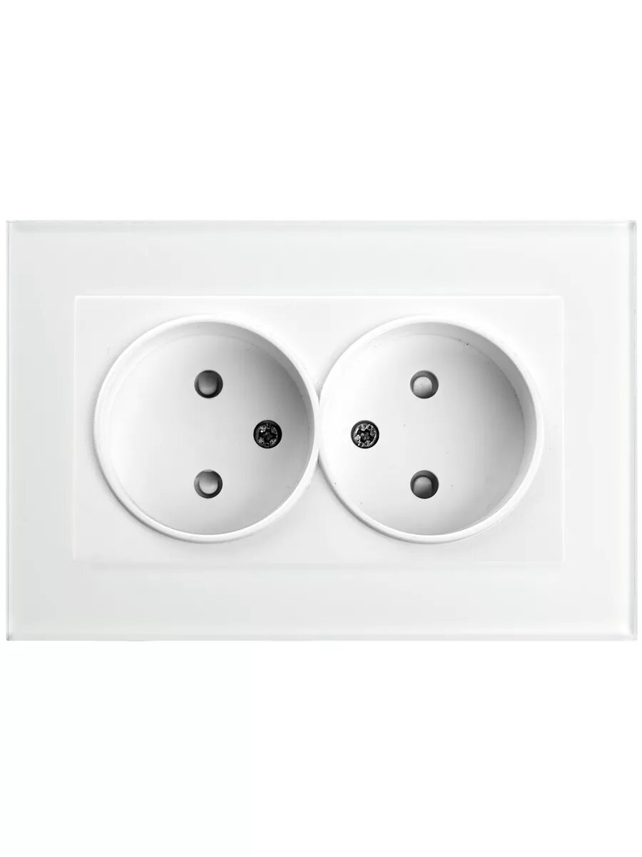 Купить Розетка Stekker "Катрин", двойная, белая, без заземления, со шторками, стекло