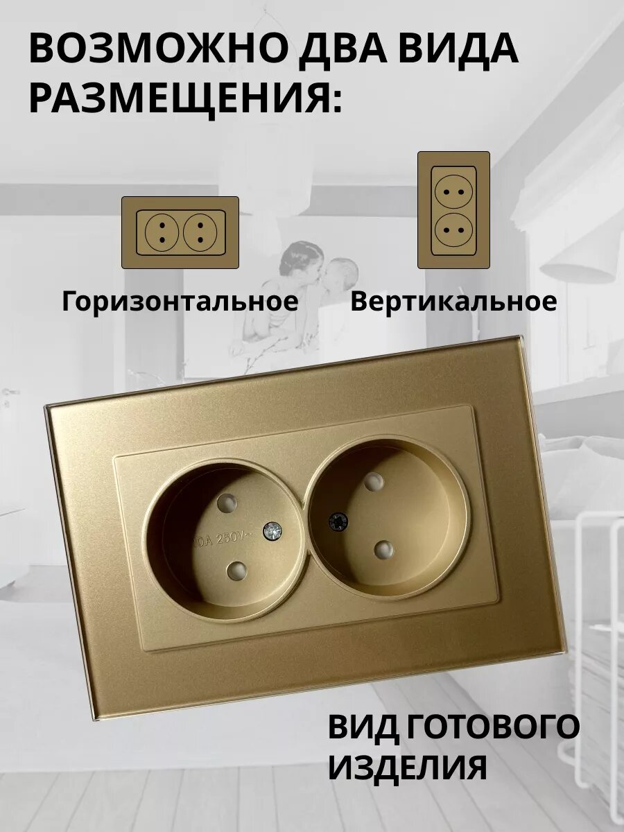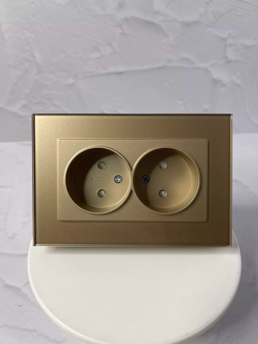 СохранитьРозетка Stekker "Катрин", двойная, золотая, без заземления, со шторками, стекло интересное: