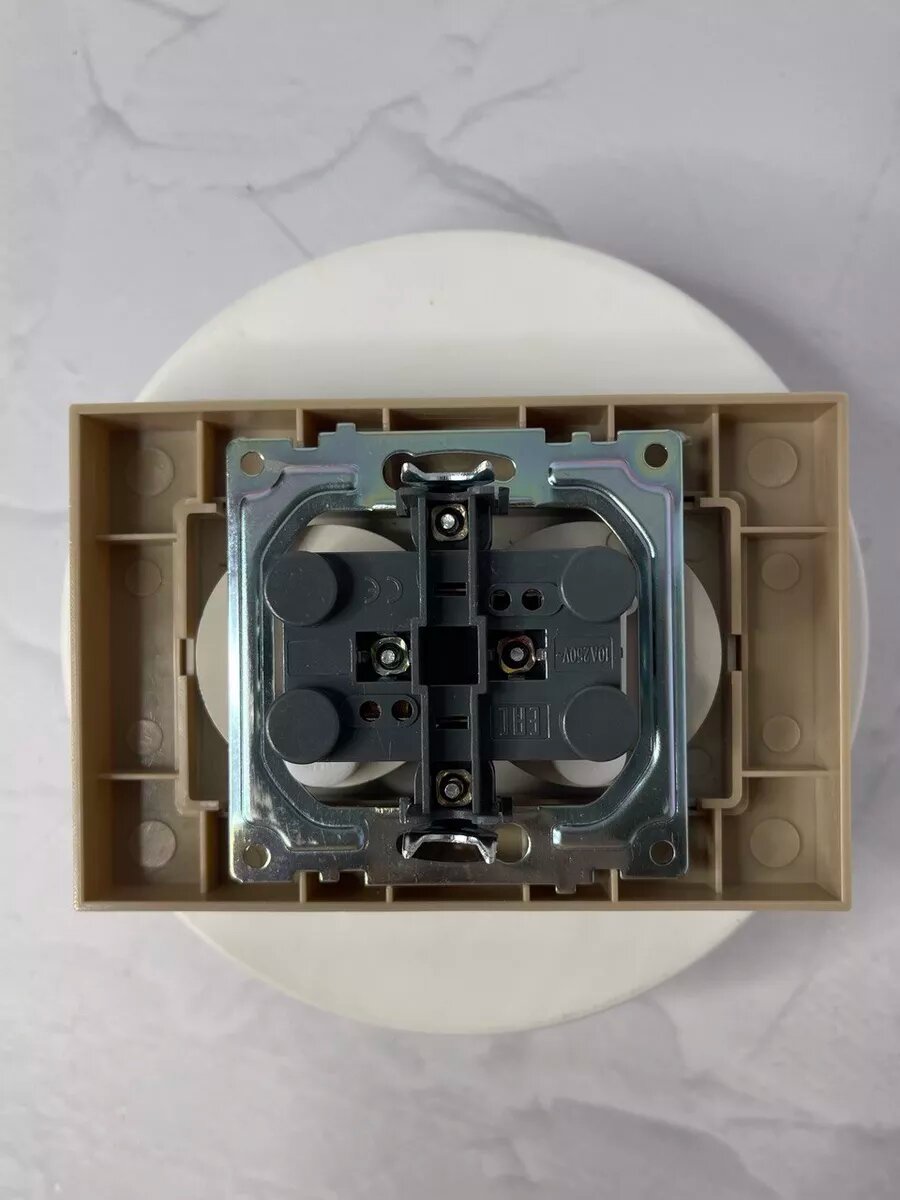 Розетка Stekker "Катрин", двойная, шампань, с заземлением и шторками, стекло