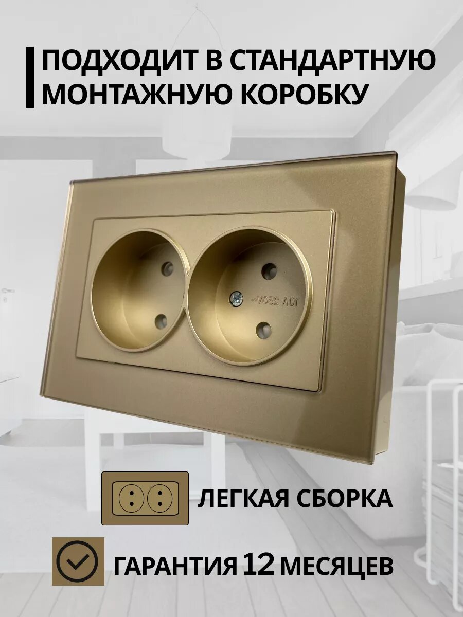 Купить Розетка Stekker "Катрин", двойная, золотая, без заземления, со шторками, стекло