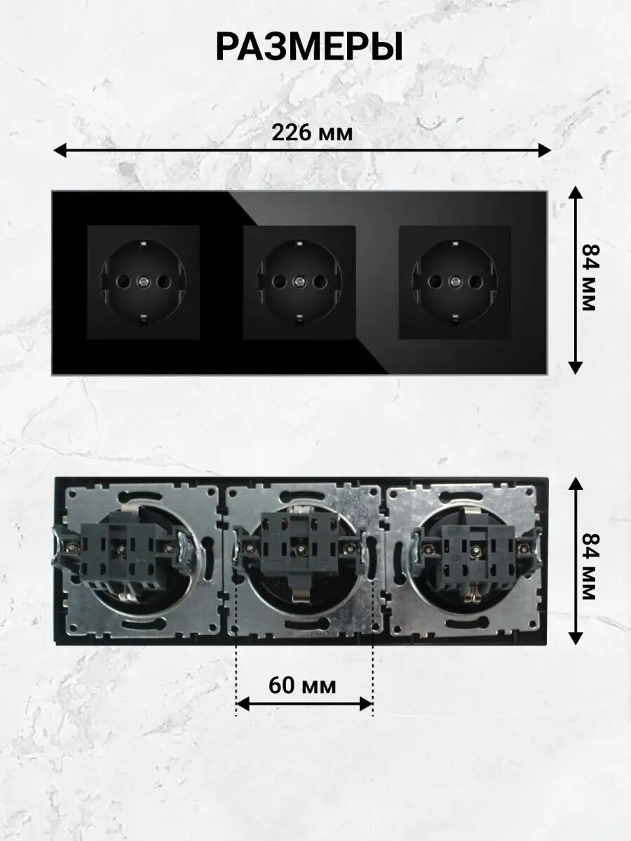 Купить Розетка Stekker "Катрин", тройная, черная, с заземлением и шторками, стекло