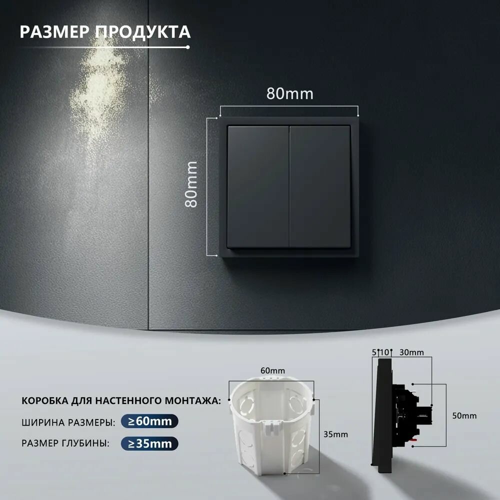 Выключатель echo, 2 клавиши, 1 пост, рамка пластик 81х81мм цвет черный интересное: