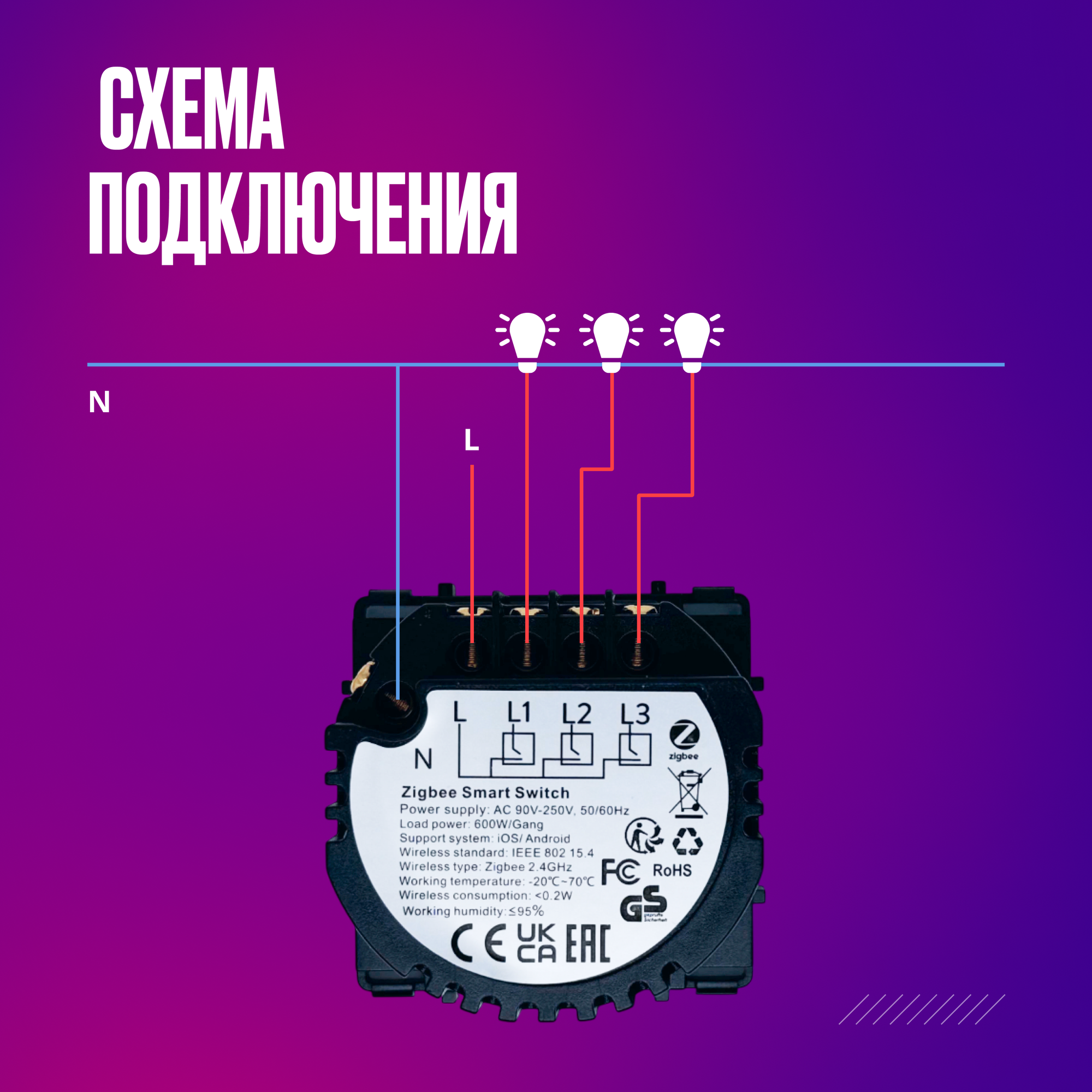 Модуль умного сенсорного выключателя Zigbee, трехклавишный, с нулем, черный