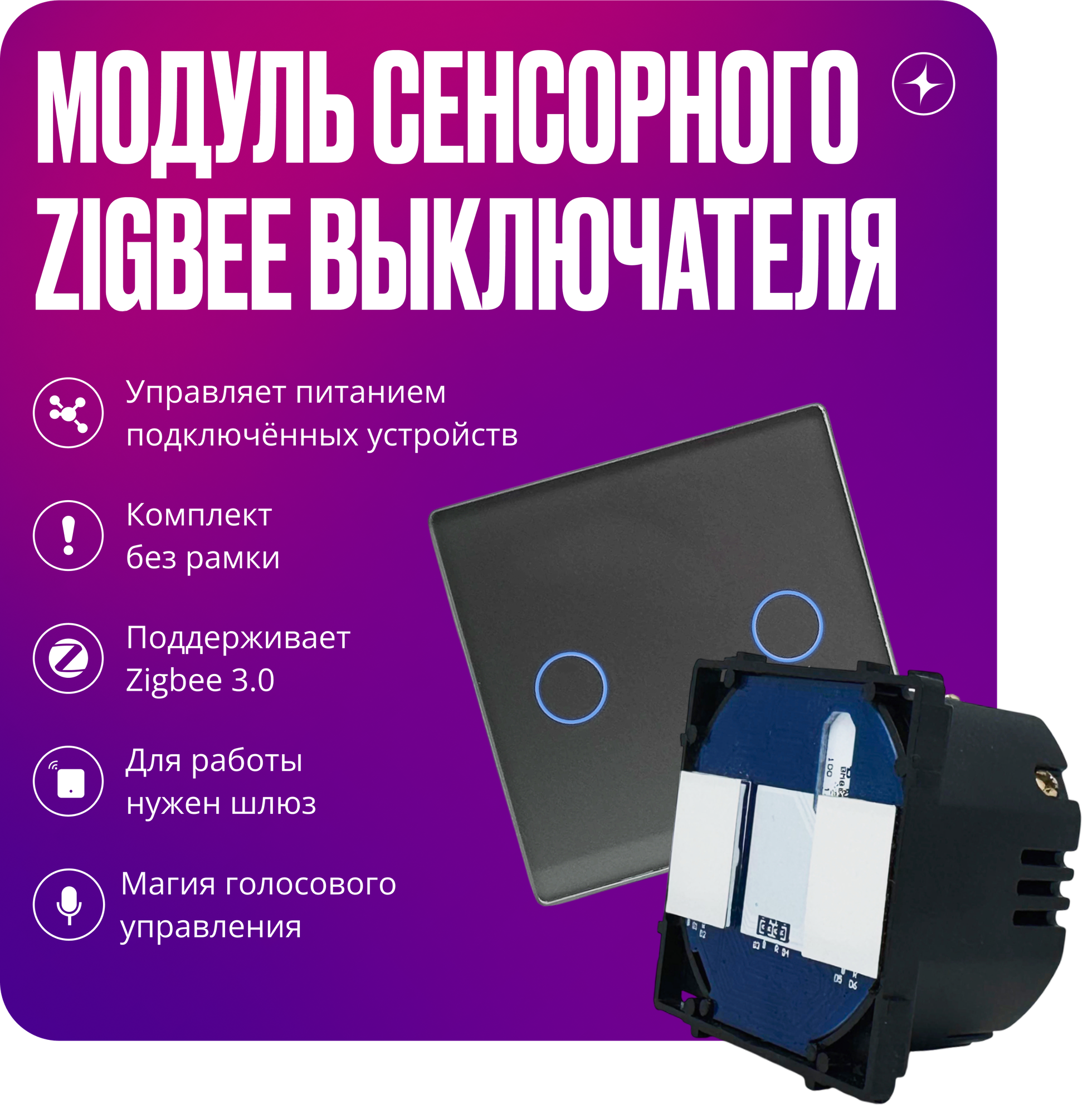 СохранитьМодуль умного сенсорного выключателя Zigbee, двухклавишный, с нулем, серый интересное: