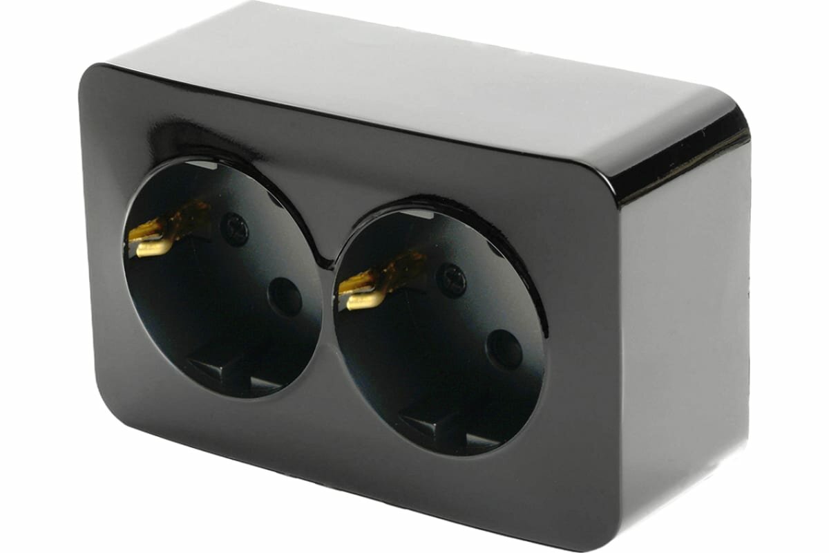 Розетка двойная ретро керамическая Арбат с заземлением черная, Interior Electric SCIE/W-03-2