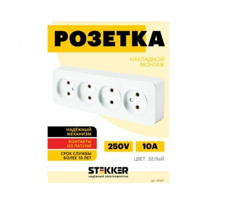 Купить Розетка четырехместная открытой установки белая без заземления IP20, 10А, 250В, Stekker, София