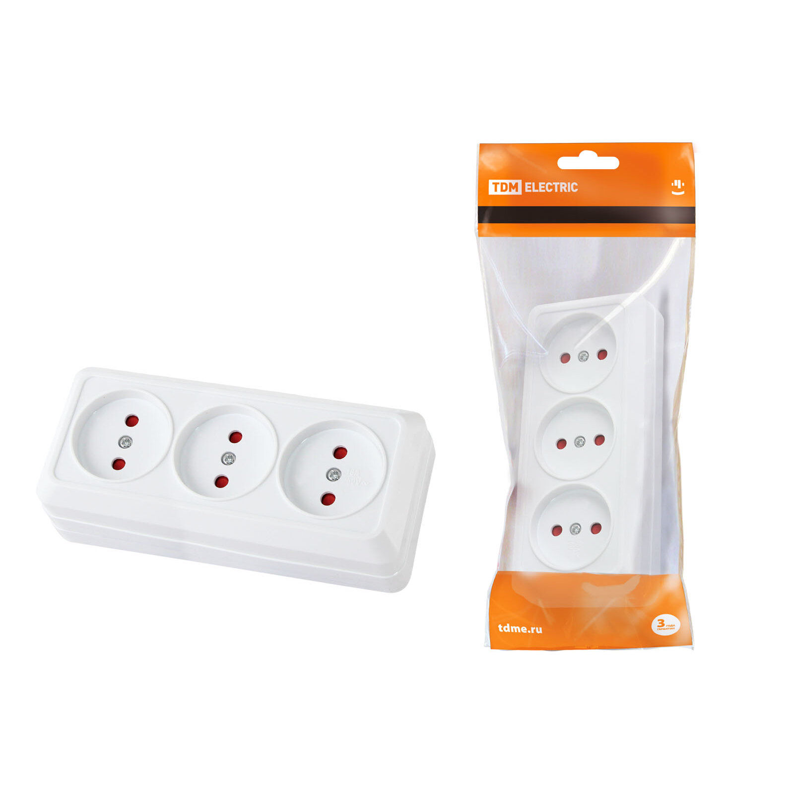 Розетка 3-х местная горизонтальная 2П открытой установки IP20 10A с з/ш белая "Ладога" TDM интересное: