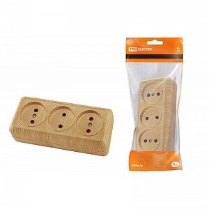 Купить Розетка 3-х местная горизонтальная 2П открытой установки IP20 10A с з/ш сосна "Ладога" TDM