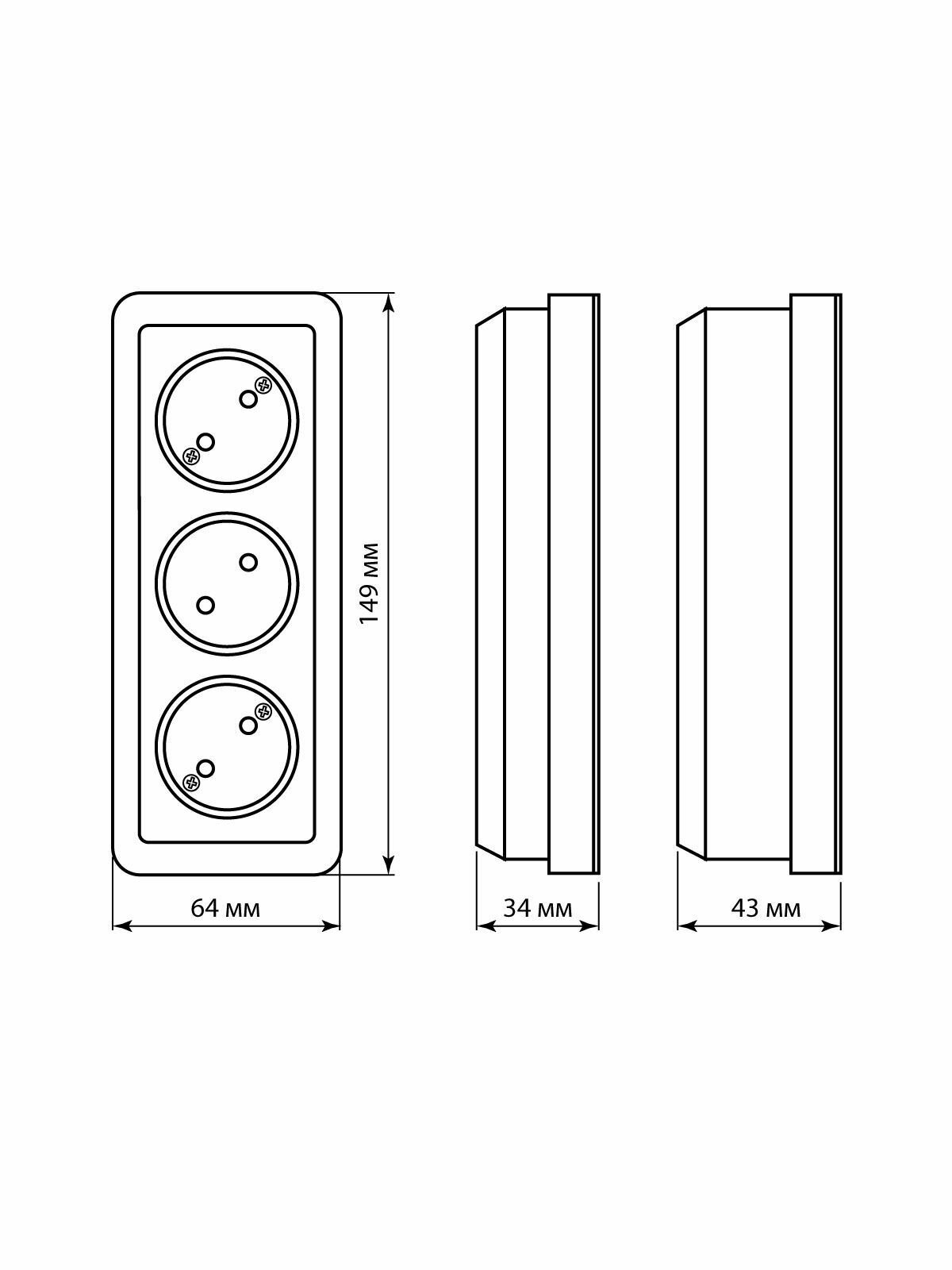 Розетка 3-х местная горизонтальная 2П открытой установки IP20 10A с з/ш сл. кость "Ладога" TDM интересное: