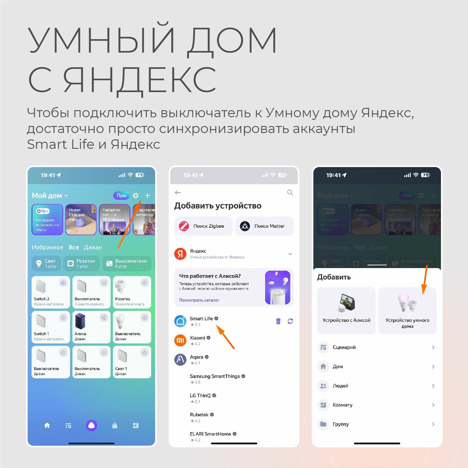Умный выключатель с Алисой и wi-fi трёхклавишный белый умный дом