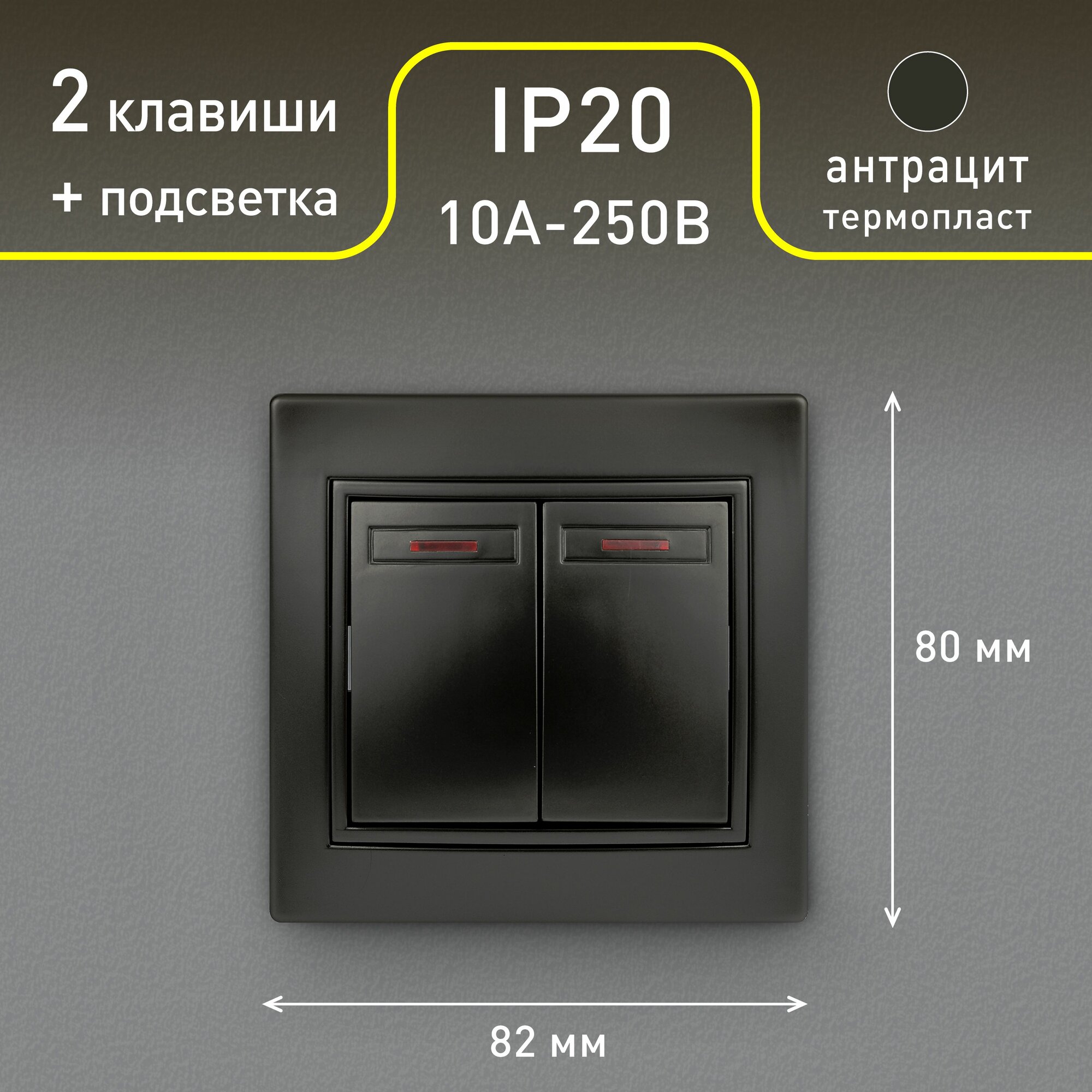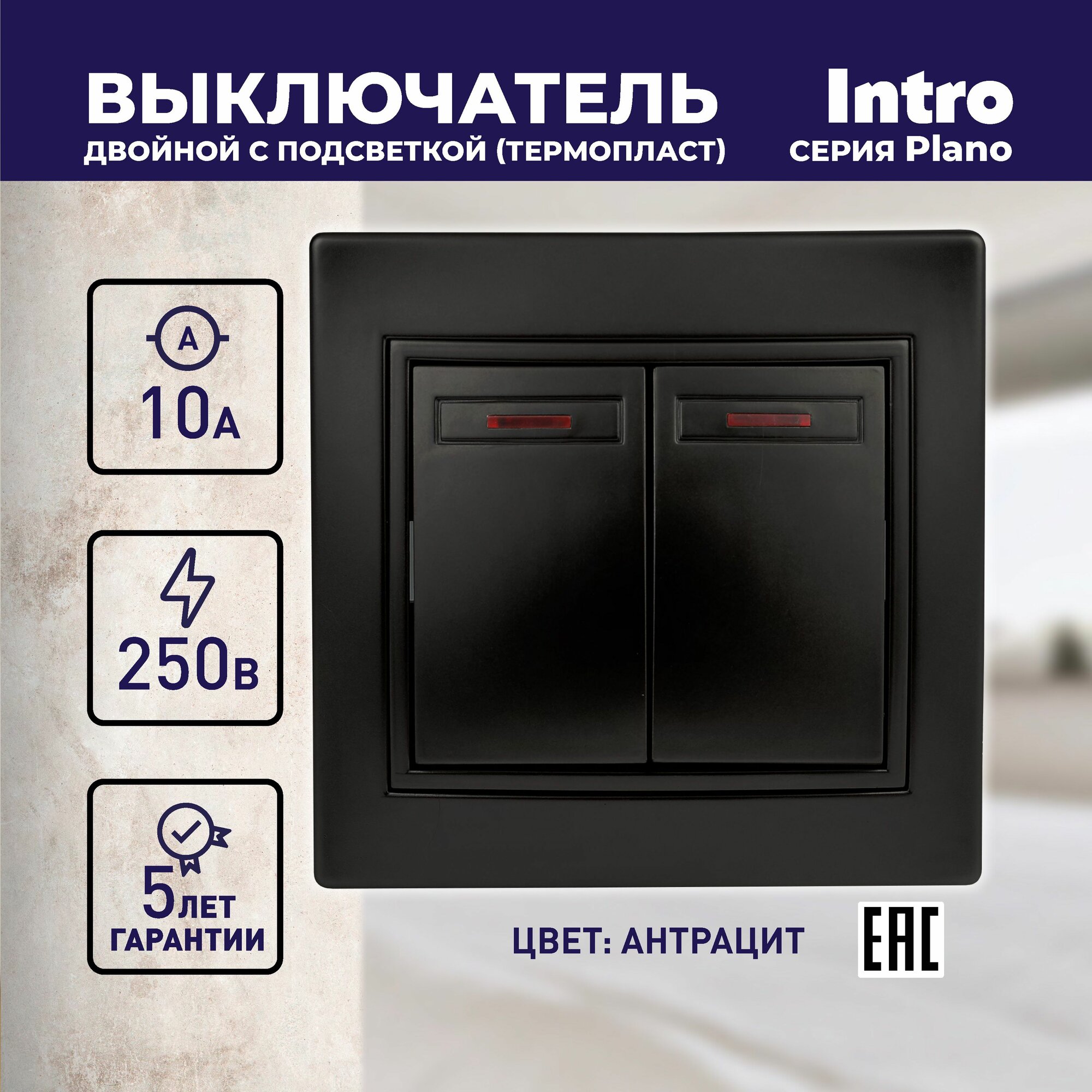 СохранитьВыключатель Intro Plano 1-105-05 двухклавишный с подсветкой 10А-250В IP20 СУ черный интересное: