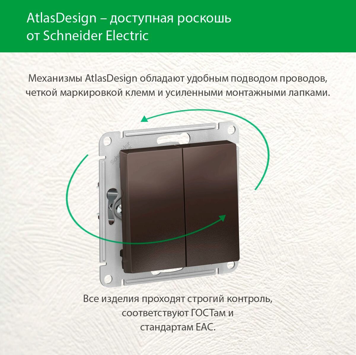 Купить Выключатель двухклавишный Schneider Electric / Systeme Electric AtlasDesign, мокко / включатель-выключатель двойной Шнайдер Электрик Атлас Дизайн