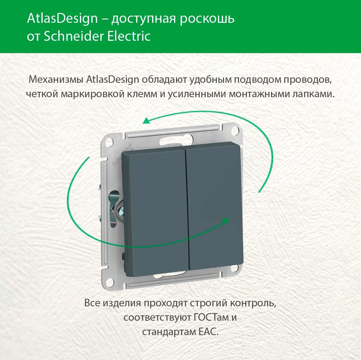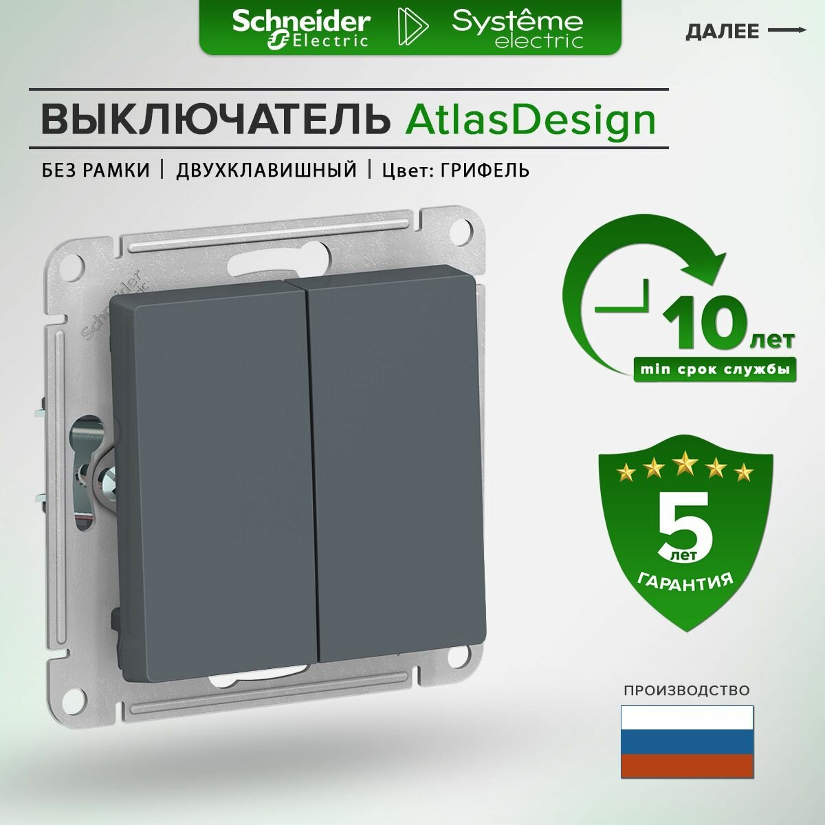 Купить Выключатель двухклавишный Schneider Electric / Systeme Electric AtlasDesign, серый, грифель / включатель-выключатель двойной Шнайдер Электрик Атлас Дизайн