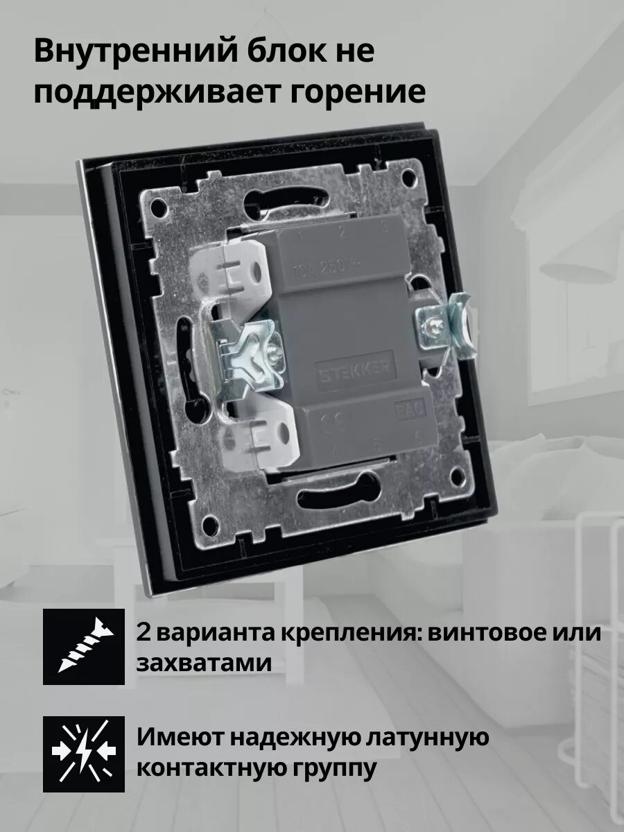 СохранитьВыключатель STEKKER Катрин, одноклавишный, c подсветкой, черный, 250 В, 10 А интересное: