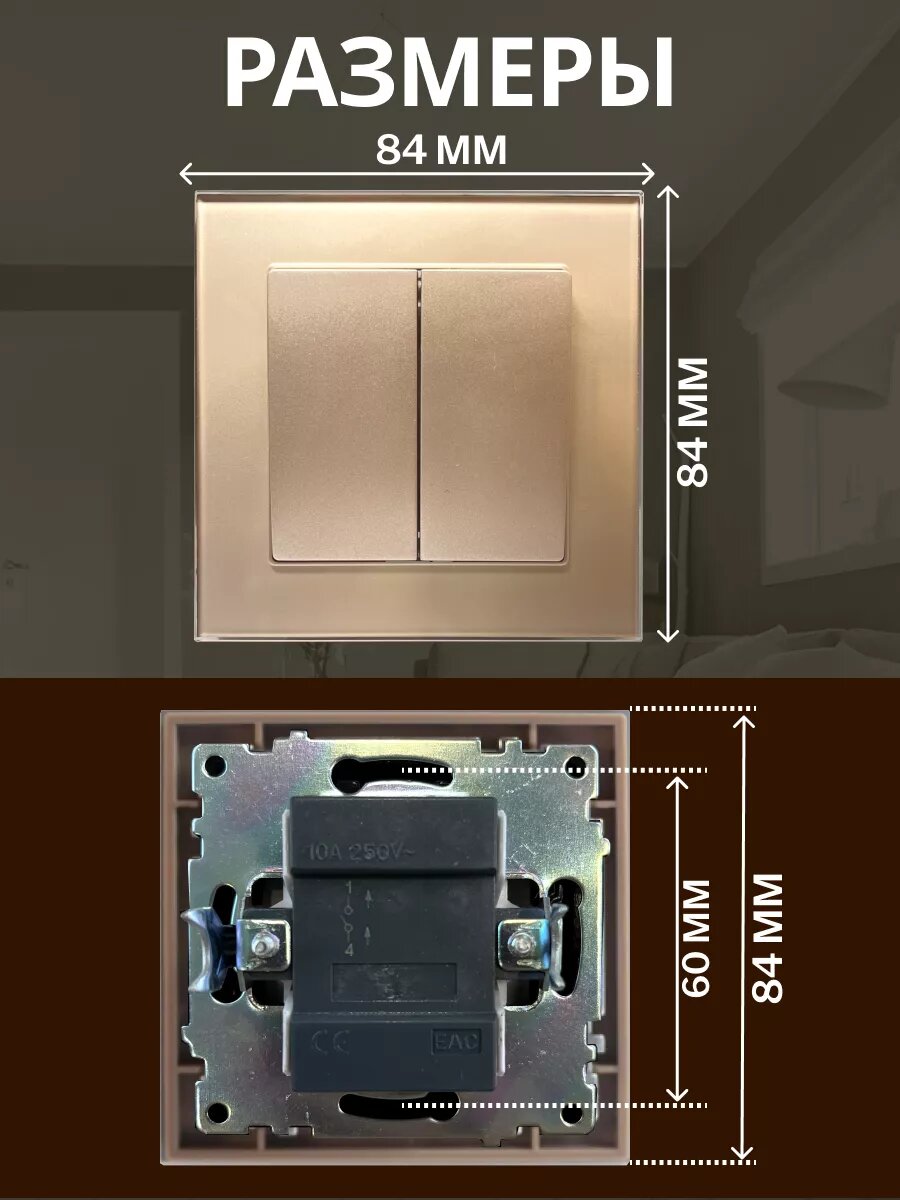 Выключатель STEKKER Катрин, двухклавишный, c подсветкой, шампань, 250 В, 10 А