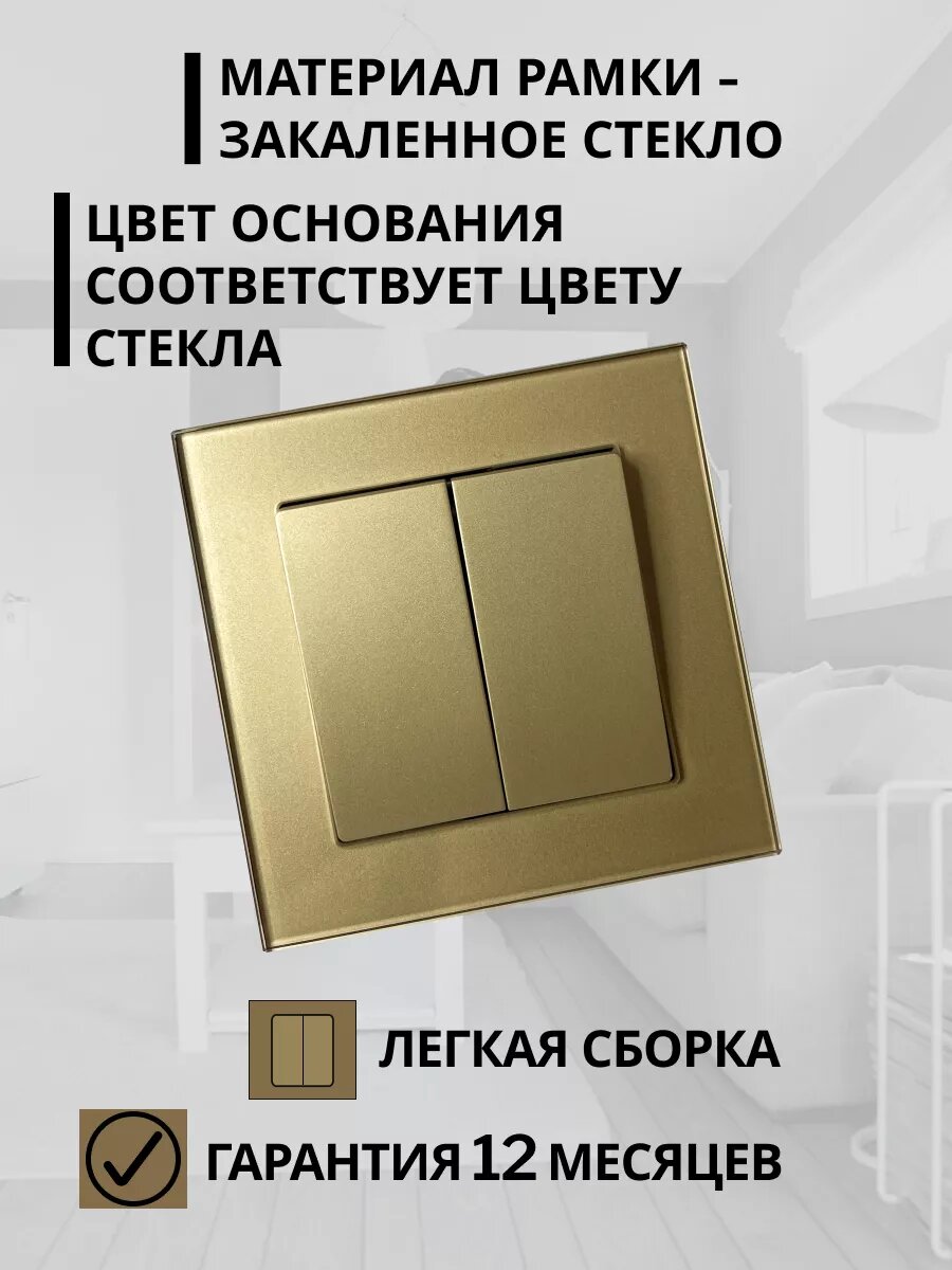 Выключатель STEKKER Катрин, двухклавишный, c подсветкой, золото, 250 В, 10 А