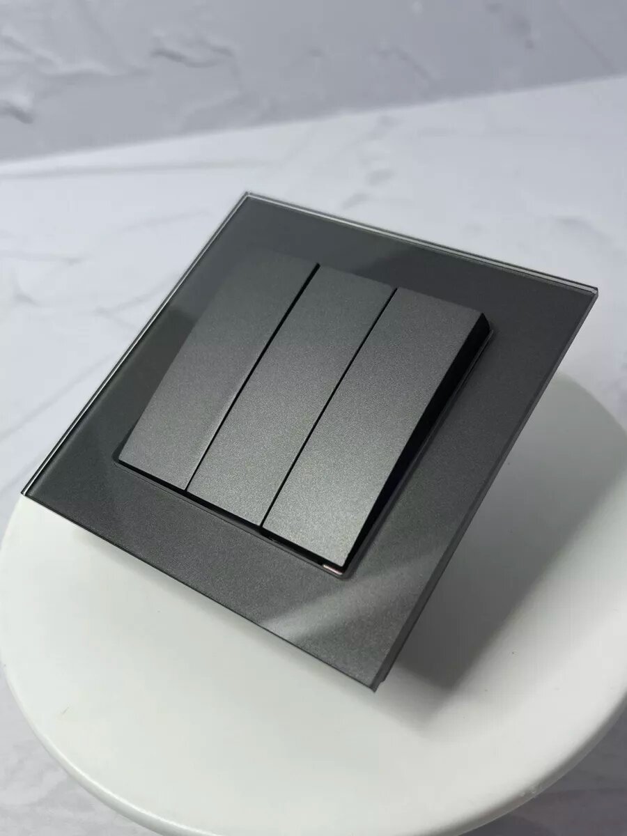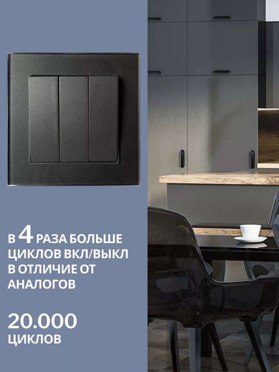 Купить Выключатель STEKKER Катрин, трехклавишный, графит, 250 В, 10 А