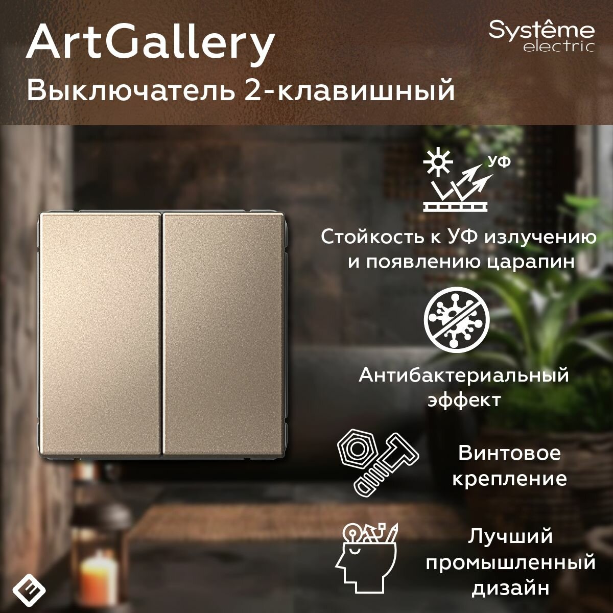 СохранитьВыключатель двухклавишный (Шампань), Systeme Electric ArtGallery (комплект 10шт) интересное: