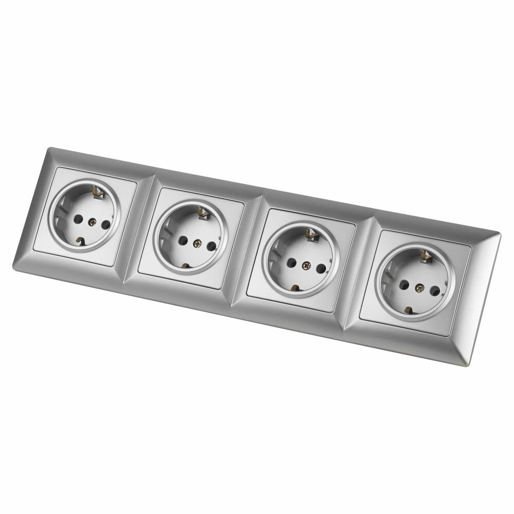 Купить Розетка четверная Intro Solo с заземлением алюминий