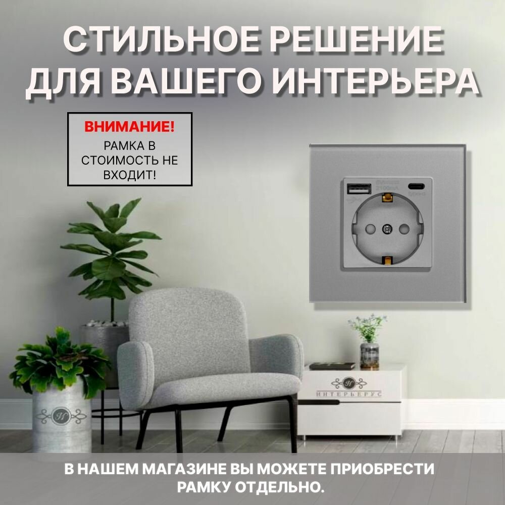 СохранитьРозетка CORKER с USB и Type-C (A+C ) с заземлением и защитными шторками, без рамки / серая интересное: