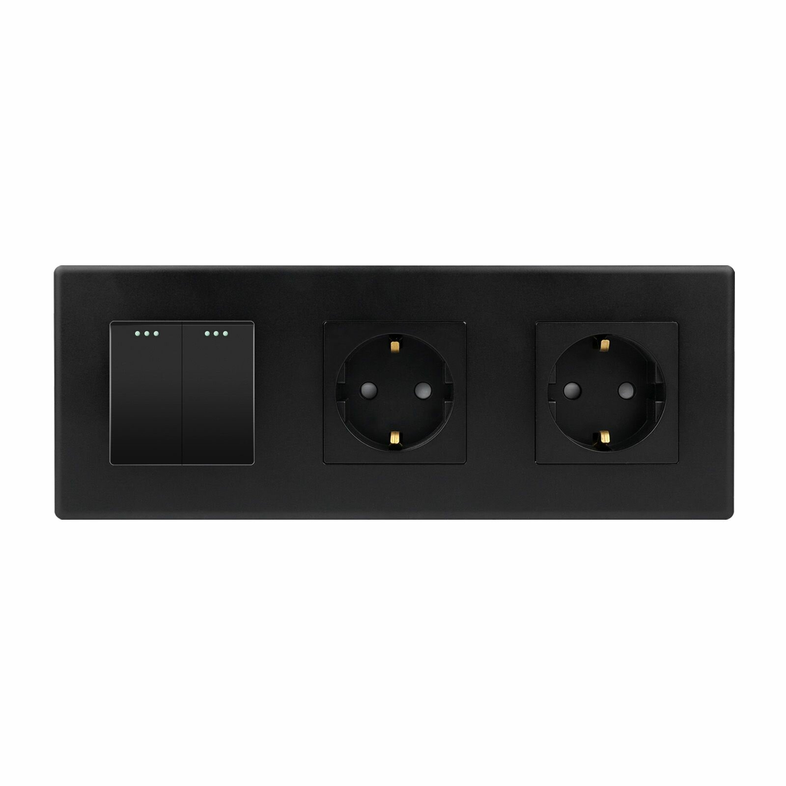 Выключатель с розеткой, 1 клавиша 2 розетки, 3 поста (M1+2F) рамка пластик 228х86мм цвет черный