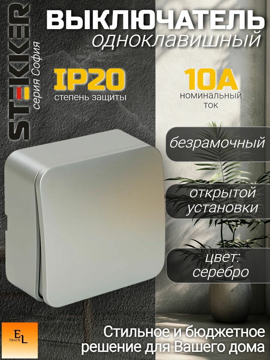 СохранитьВыключатель одноклавишный открытой установки STEKKER, серия софия, серебро, IP20 интересное: