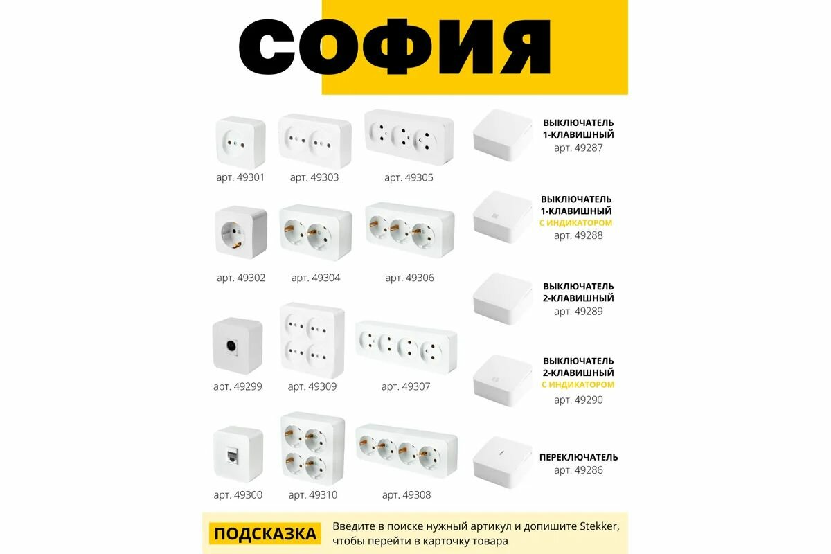 СохранитьВыключатель одноклавишный с подсветкой открытой установки STEKKER, серия софия, белый, IP20 интересное: