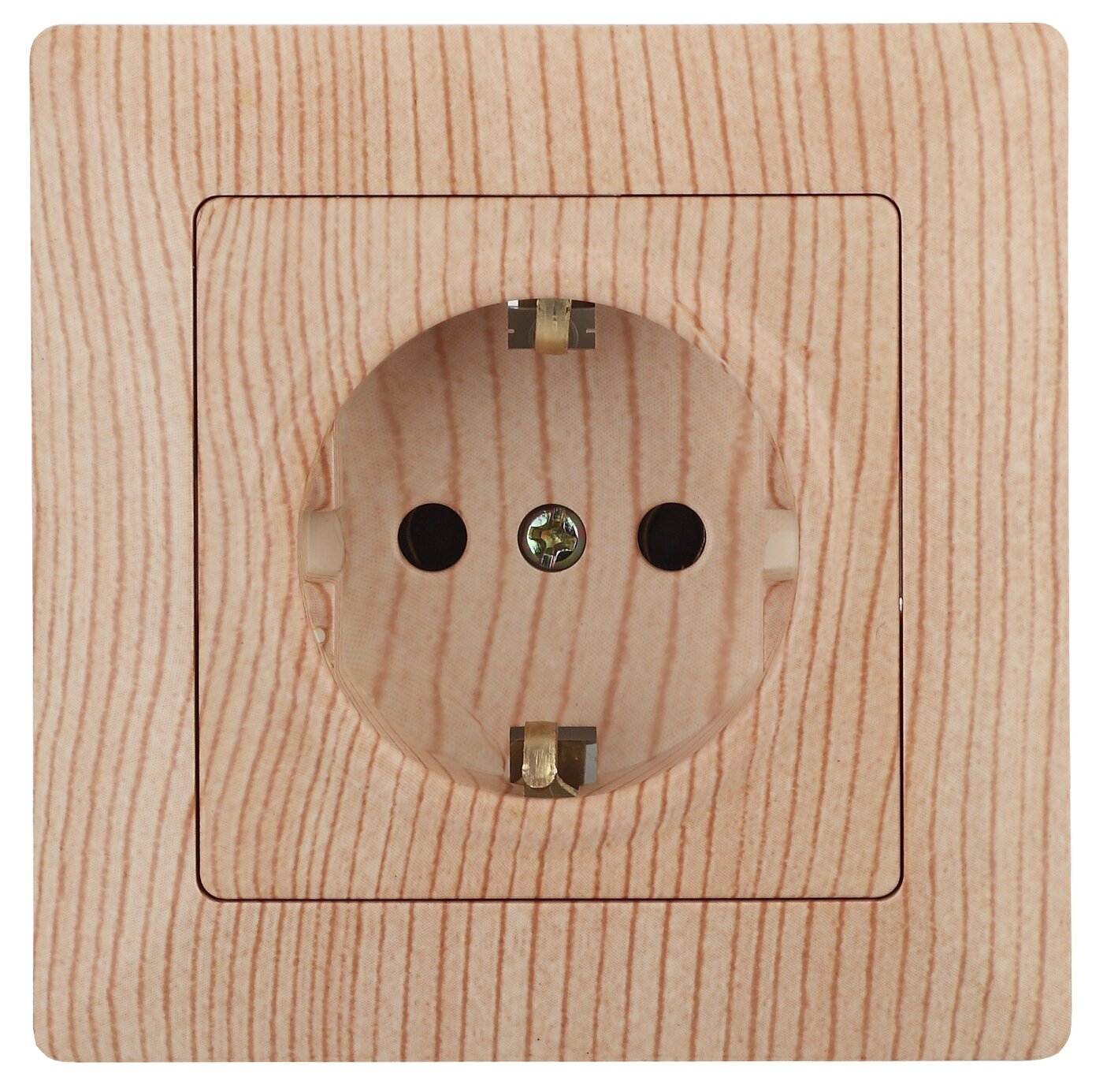 Купить Розетка Intro Solo 4-202-11 с заземлением 2P+E Schuko 16А-250В IP20 скрытой установки сосна